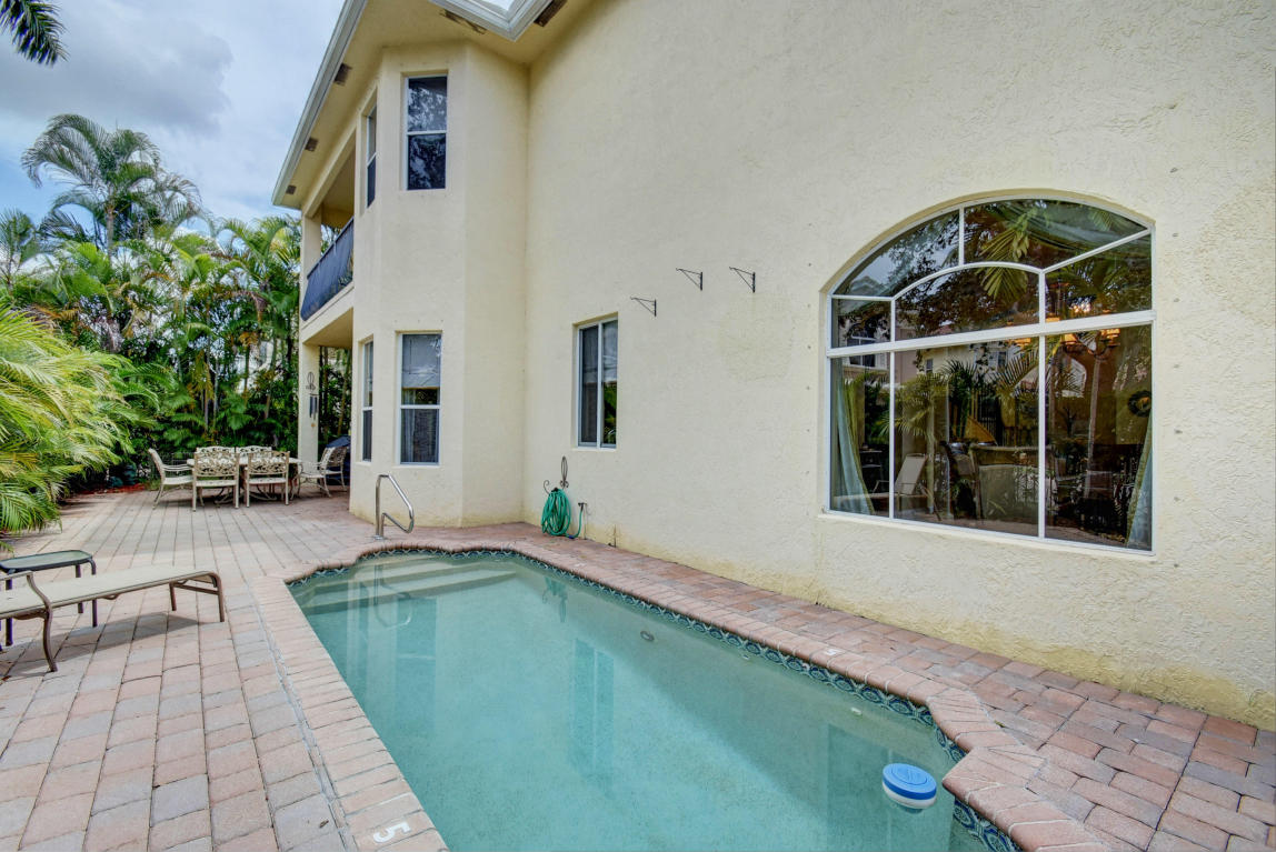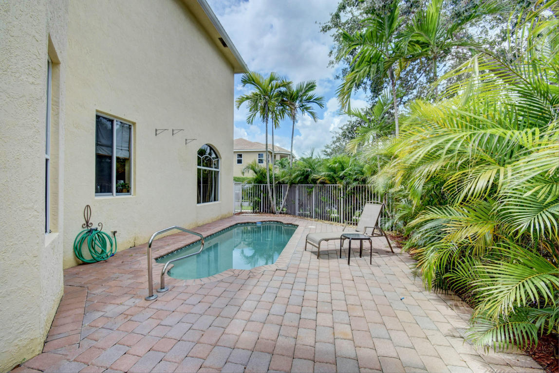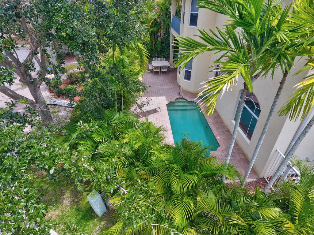 Quiet & Private Location. Corner lot that adjoins a cul-de-sac in the heart of the Palma Vista community. New landscaping has been added for extra seclusion. The floor plan is a modified Portofino. There is tile in the main living areas, a gorgeous wood staircase & carpeting in the bedrooms. The kitchen features granite counters and stainless steel appliances. The master bath has been upgraded. Newer A/C & washer/dryer. Relax in the refreshing dipping pool surrounded by your own lush tropical oasis.