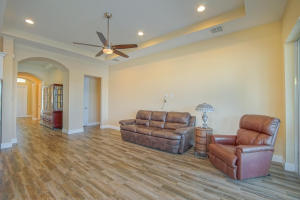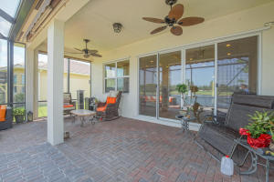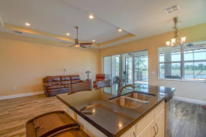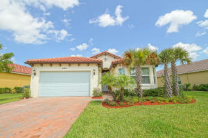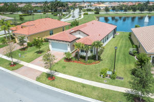Practically New and immaculately kept this Portofino model is Bright and Open. Upon entering you will be wowed by the volume ceilings and beautiful wood like tiled floors throughout. This home features an open and spacious living areas that include 3 bedrooms, 2.5 baths, a den/4th BR, gourmet kitchen equipped with stainless steel appliances, granite counter tops and beautiful wood cabinetry. The spacious master bedroom features two large walk-in closets and luxurious master bathroom with dual sinks and an extra large walk in shower. You will enjoy serene lake views from your backyard from your extended paver patio with screen enclosure and fenced side yard! This home also offers a barrel tile roof, paver driveway, and lush landscaping.