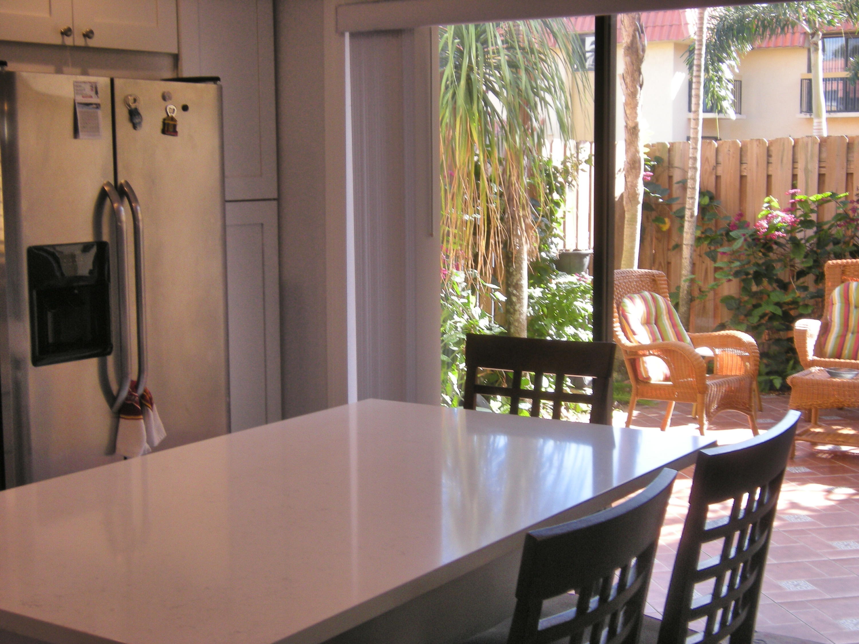 Two short Blocks to the new Mandarin Oriental Hotel. This newly remodeled townhome is located in the center of what is happening downtown Boca. One mile to the beach and Mizner Park.The kitchen was redesigned one year ago. Recessed lighting in living areas, new paint and molding.AC 18 months new!2.5 newer baths. Newer floors. Quartz counters in kitchen. New laundry and storage. This unit is at the back of the complex and is easily accessible but quiet. only 50 feet from the community pool. Parking only 100ft from unit. Patio area becomes a part of the home on breezy days. East exposure garners the best ocean breeze. Complex is well-maintained and adjacent to grocery, retail, restaurants, major roads and public transportation.LOW HOACOVERS CABLE AND WATER! Near everything.EZ to SHOW