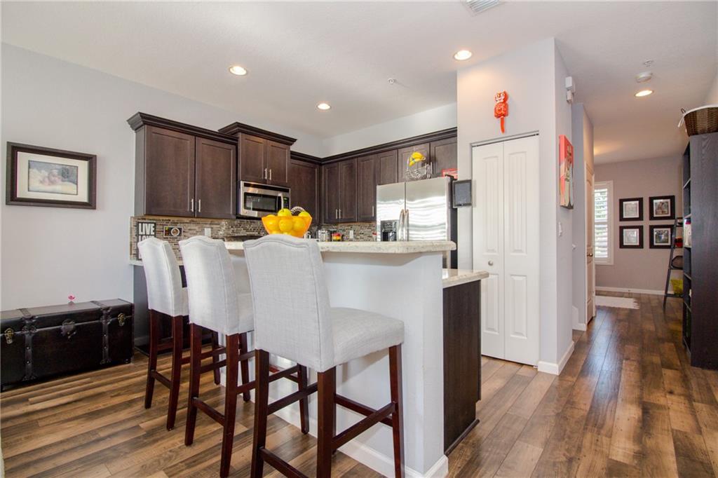 Beautifully designed two story Townhouse over looking a lake in a gated neighborhood. This three bedroom 2.5 bathroom townhouse was purchased from the developer and had many upgrades added before the owners moved in to the home. Front loading LG washer and dryer, recessed lighting, Bosh dishwasher, ceiling fans, and built in storage in garage to name a few. Please take a look at the virtual tour of this home and make an appointment. I will even take you out and show you the trails around the lake.