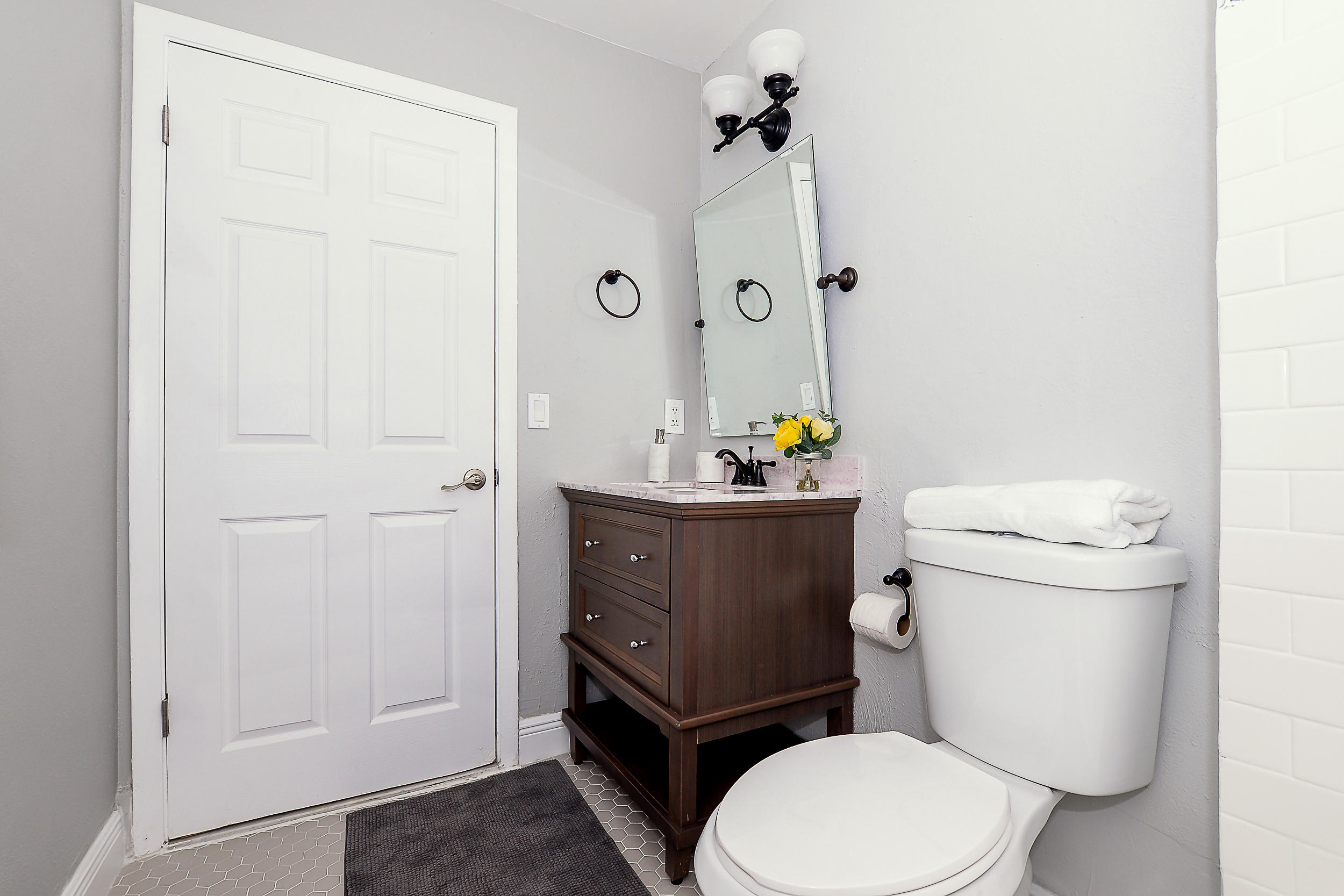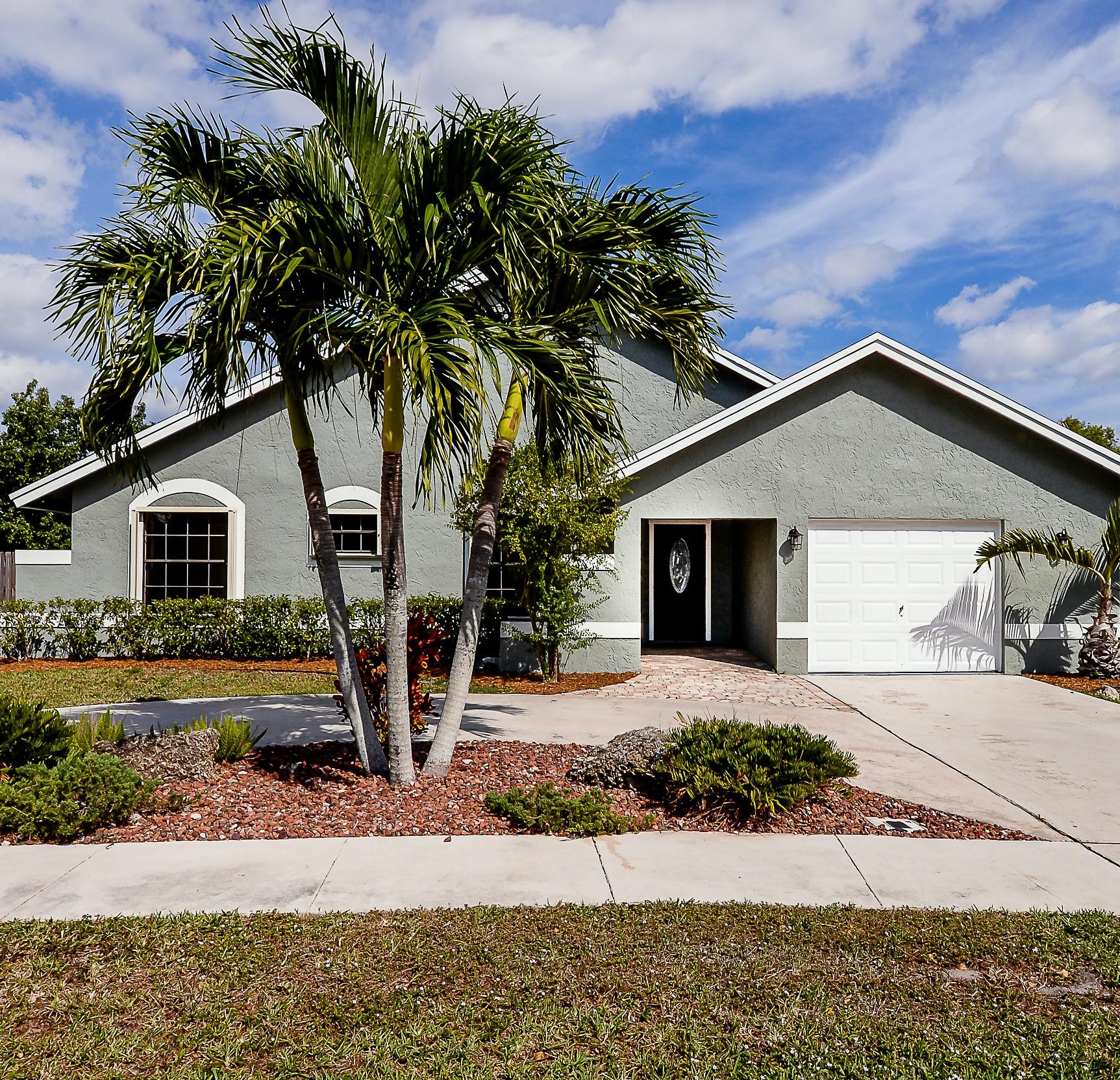 Renovated Boca Raton home with extra large backyard and access to the lake. No detail has been spared: this house looks and functions as new! When you enter you'll immediately notice the vaulted ceilings and gleaming ceramic tile floors. Amazing quartz kitchen with breakfast bar. Bathrooms are elegantly designed! The large closet in the master bathroom has room for all your stuff! Brand new stainless steel appliances, roof, electrical and air conditioning systems, and ceiling fans in all bedrooms to keep you cool on hot days. Relax by the sparkling pool, which has been resurfaced with new equipment. This home has it all! Located in a quiet yet accessible Ashley Park subdivision with very reasonable HOA fee. Schedule your showing today!
