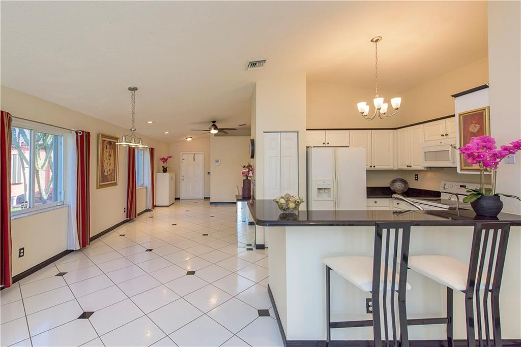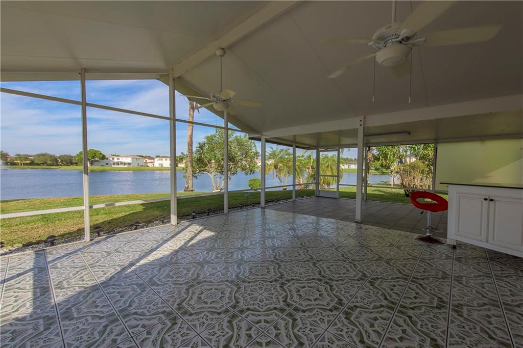 Remodeled Kitchen w/ wood cabinets & granite counters. Huge back yard w/ magnificent lake view. Huge screened patio. 4 bed w/ split floor plan. Master bedroom has roman tub & huge walk-in closet. All bathrooms remodeled vanities w/ granite. Volume ceilings lots of window & light. Accordion shutters, gated community with pool & playground. 1 car garage. Relax in the massive screened patio overlooking the lake w/ fountain. Move-in ready. Centrally located, easy access to mall & Pembroke Gardens.