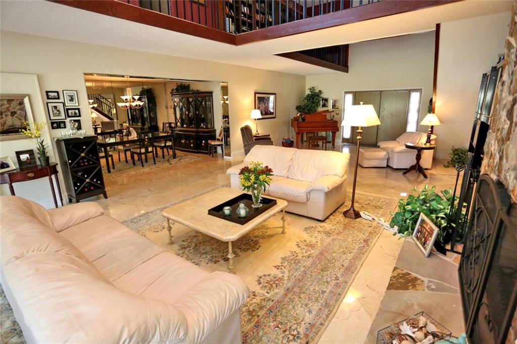 Spacious waterfront home in ideal location. Marble diagonally installed on 1st floor, 2 master suites on 1st & 2nd floors, perfect for Nanny or in-law suite. Floor to ceiling stone fireplace, billiard room w/wet bar & pool table. Granite kitchen w/breakfast nook, waterfall, 60' balcony, pool & canal views. Laundry room and 2 full bathrooms on 1st floor. Take stairs to library & loft area. Spectacular balcony length of home with spiral staircase. A true one of a kind. Four AC units & two water heaters.