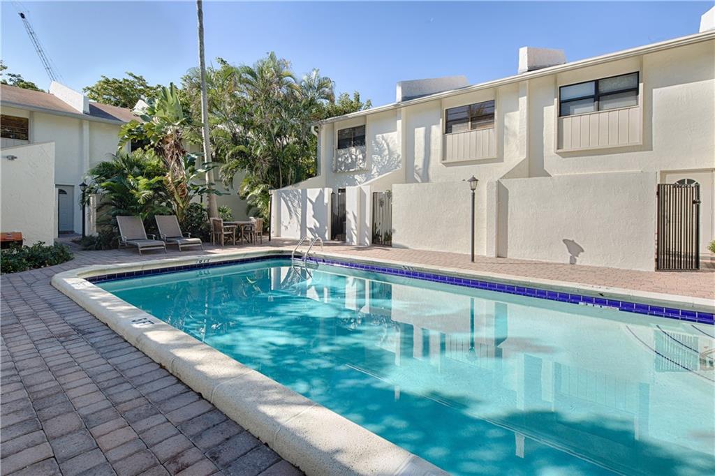 Updated townhome in popular Victoria Park! Features include a newer kitchen with wood cabinets and granite countertops, Spanish tiles and wood laminate flooring throughout. Two private patios and impact glass windows. Both bedrooms are large with a good amount of closet space. Gated complex with community pool, assigned parking spot (#2), and plenty of guest and street parking. Next door to Victoria Park Shoppes, and close to downtown and the beach. Call today for more information!