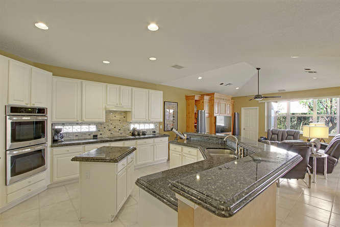 Great home with an oversized kitchen and gorgeous granite countertops with white cabinetry open to family room in a gated non-equity community. Enjoy biking/jogging trails, tennis programs, clubhouse, pool, exercise room in this active neighborhood.