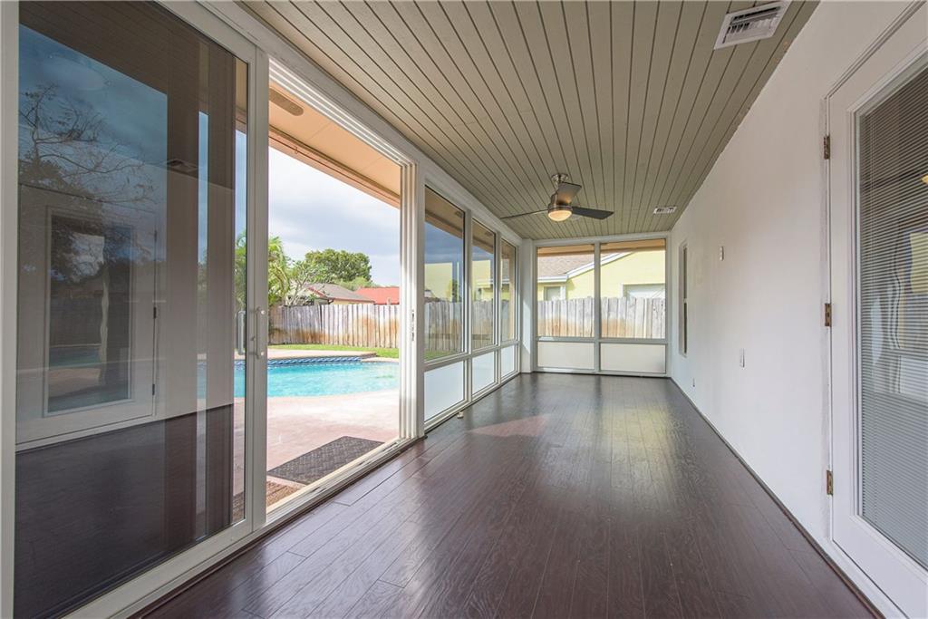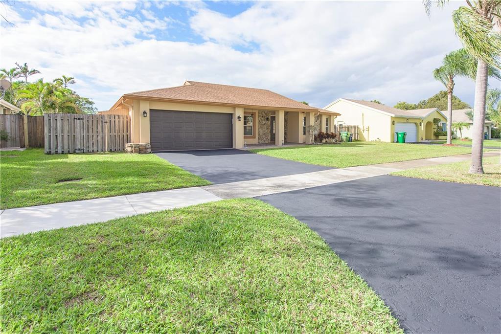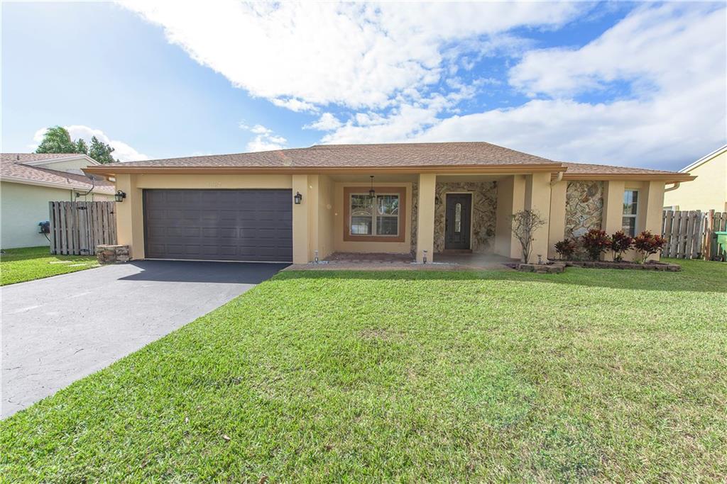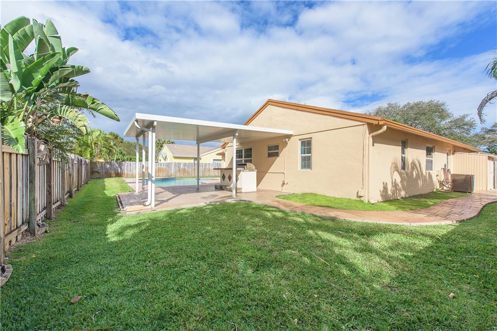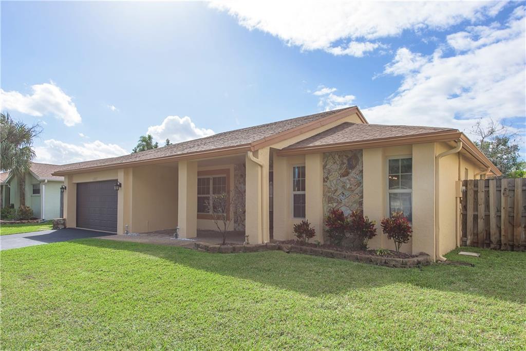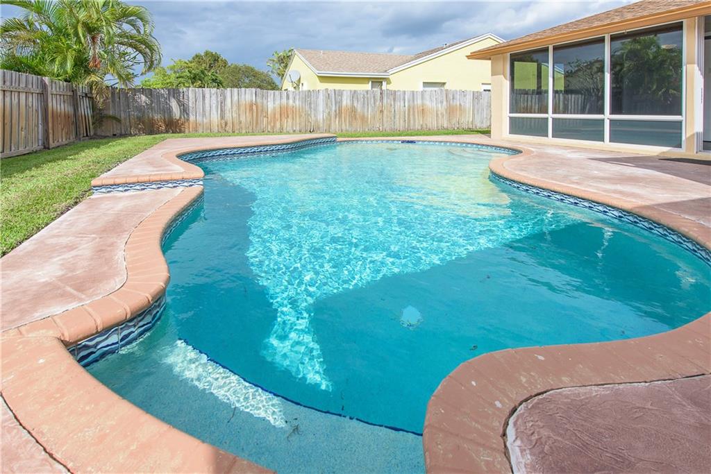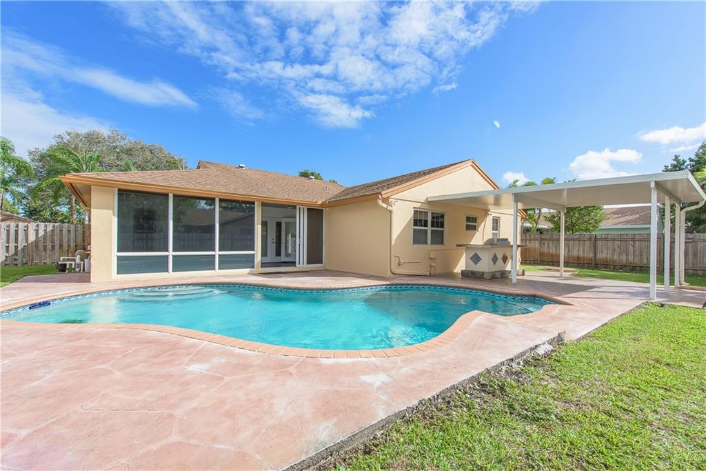 Updated 3 bedroom 2 bath home with pool & covered BBQ area. Roof 2003, hurricane rated garage door 2013, Florida room has A/C & impact windows & doors, tank less water heater. Hanging garage storage & hurricane rated storage shed. Great schools!