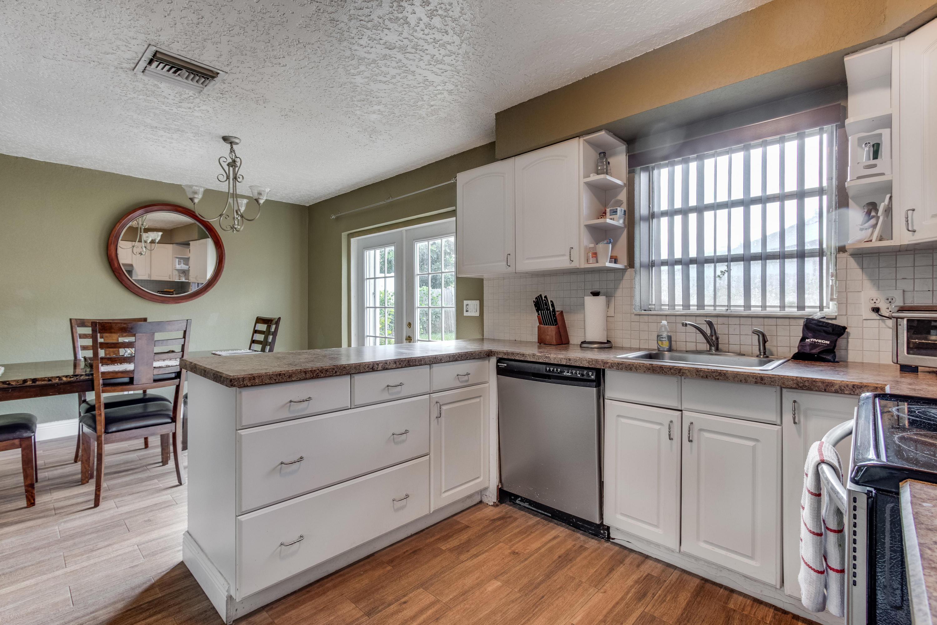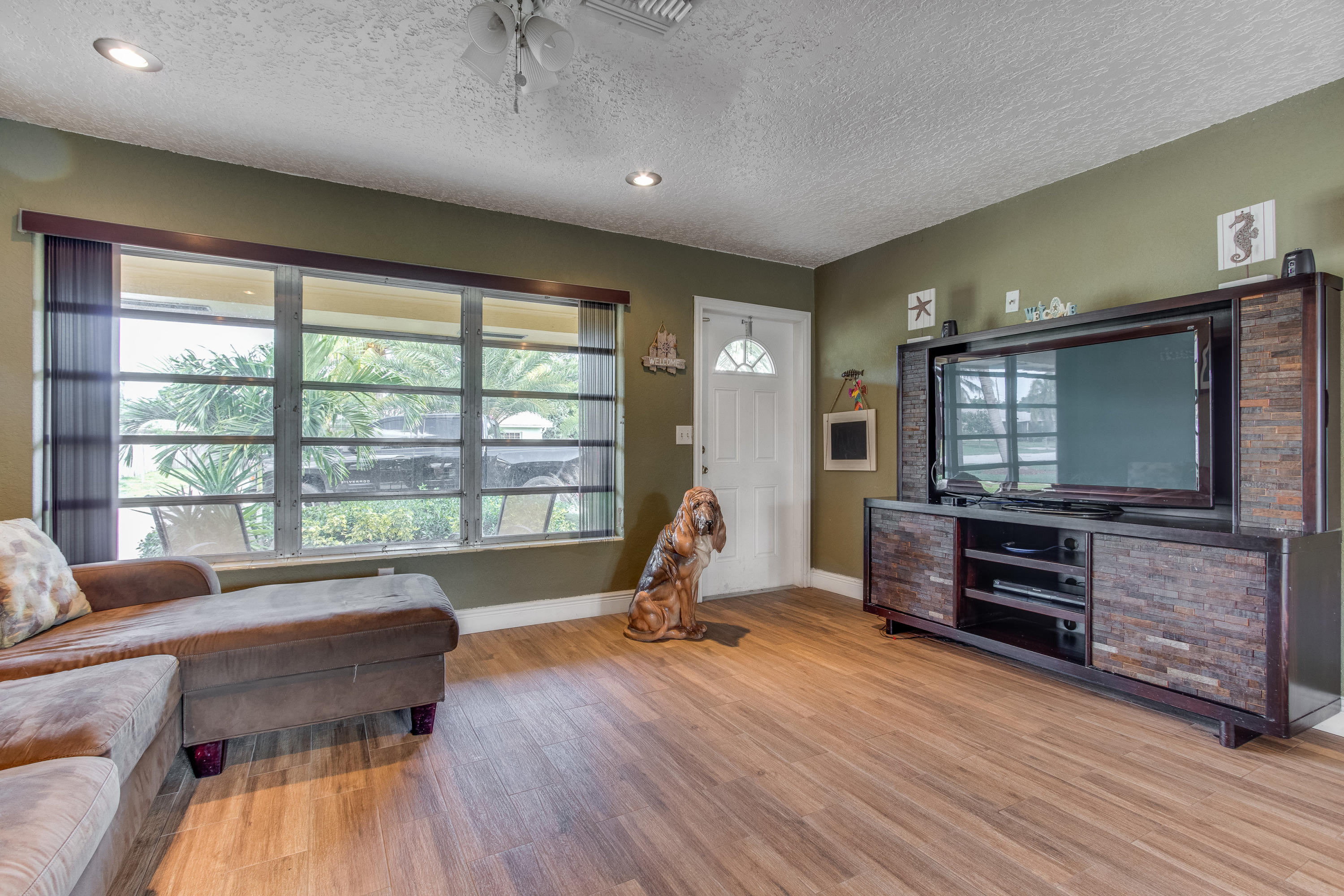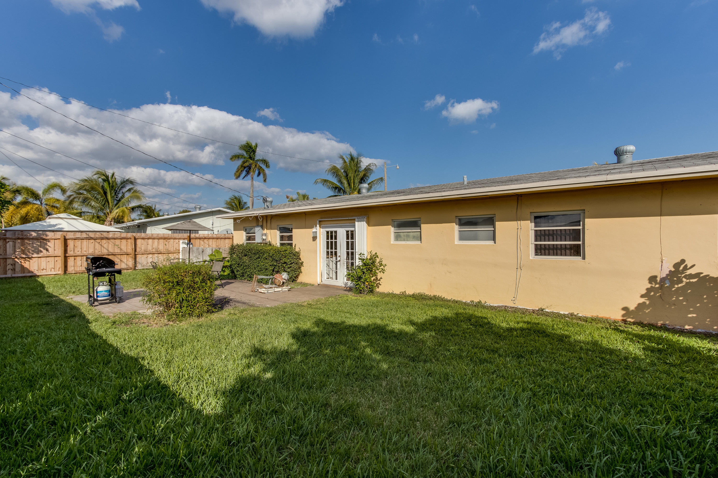 Lovely three bedroom home on a quiet, slow traffic street. Beautiful, porcelain wood look tile throughout. Fully renovated kitchen and baths. French doors lead out to large open yard with brick paver patio. Room for boats/RV on each side of home (both sides have gates). Circular drive.