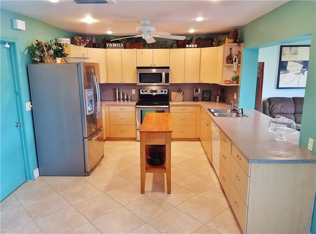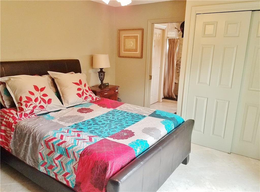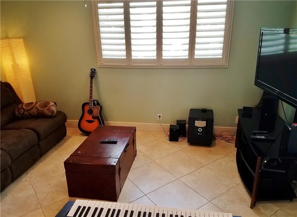 Beautiful updated LAKEFRONT home, with lovely neutral tile throughout. Very open concept with great kitchen. Updated bathrooms, Master shower with windows overlooking Lake. Private courtyard off the master bedroom. 3rd bedroom has been opened to a tv/music room off the kitchen. Oversized heated pool with waterfall. Massive deck, Pergola and entertaining areas. Huge Dock for your Kayak. Hurricane windows. Plantation shutters. 1 car garage. Paver, double driveway. AMAZING HOME