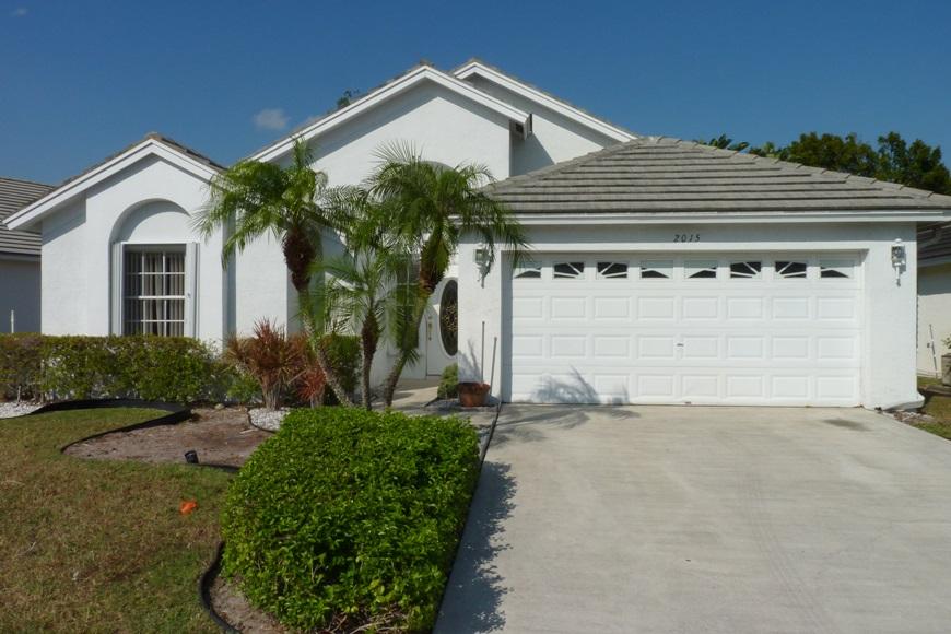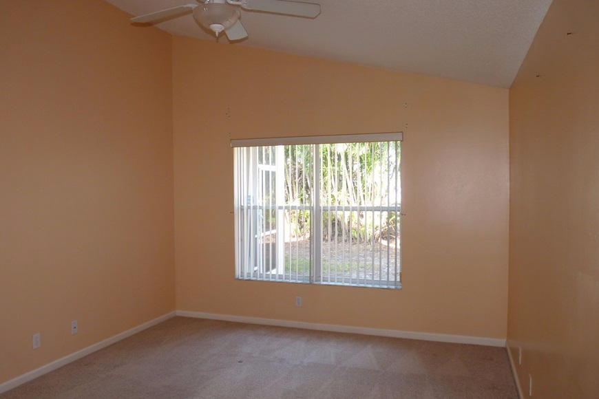 Rarely available home in Normandy Village. 1 story located on an over-sized pie shape lot with private and shady backyard. Split bedroom floor plan with open layout and high ceilings throughout. Foyer entry with wood floors. Living room features arched window and sliding glass doors which lead out to the screened patio. Kitchen has vaulted ceiling and a breakfast nook. Master bedroom features high ceilings, a walk in closet, private bathroom with dual sinks and a walk in shower. Tropical backyard is all fenced with mature tree. All windows have accordion shutters for easy storm prep. Community is gated and has a low HOA fee includes also full lawn service. Great location close to schools, restaurants and shopping. FHA/VA finance welcomed. Bring all offers, easy showings anytime!