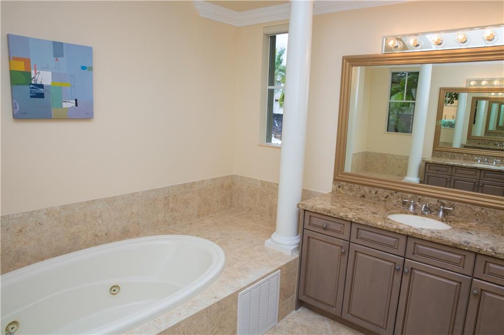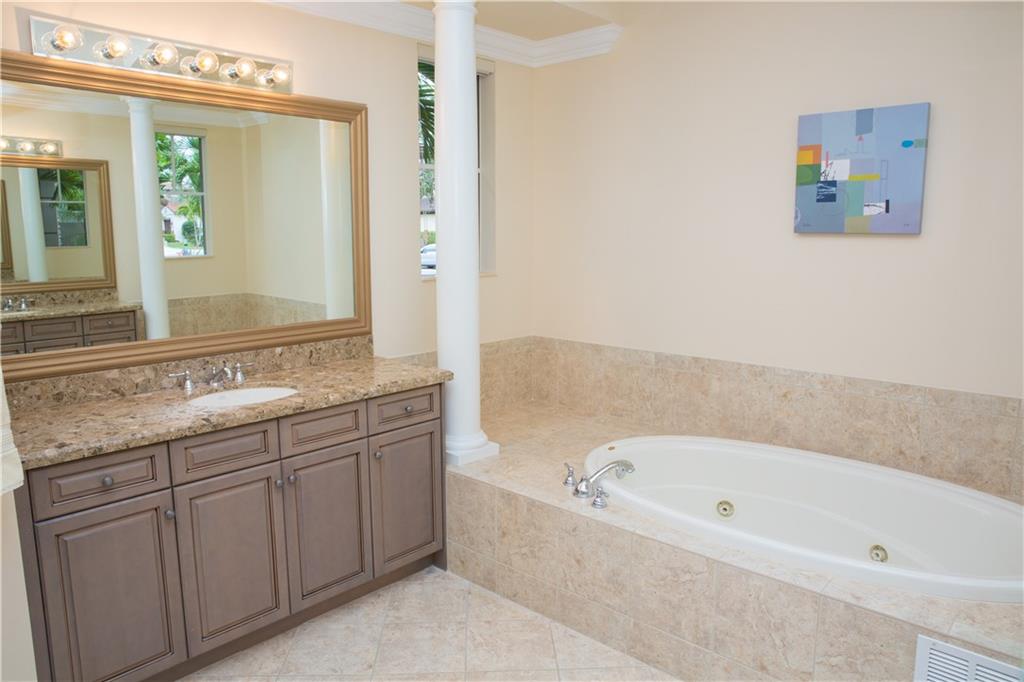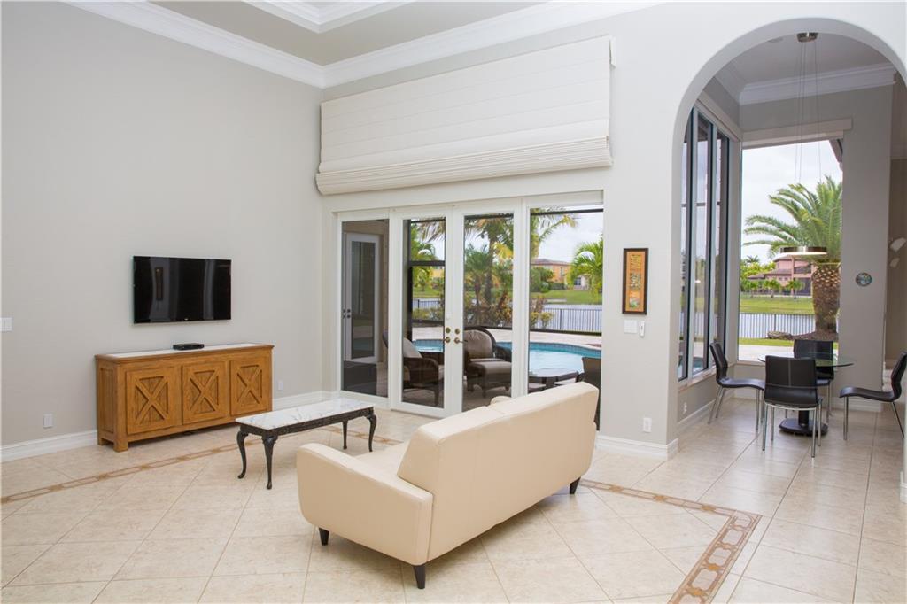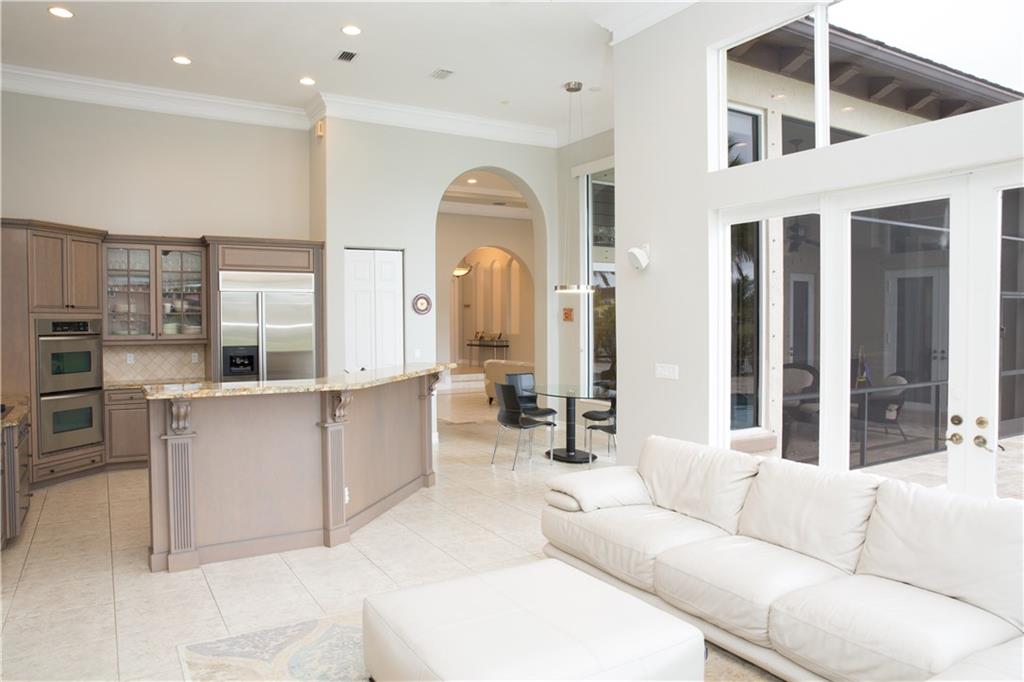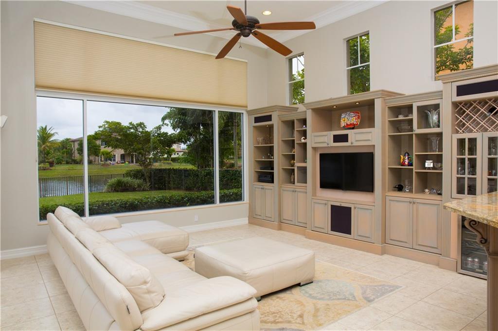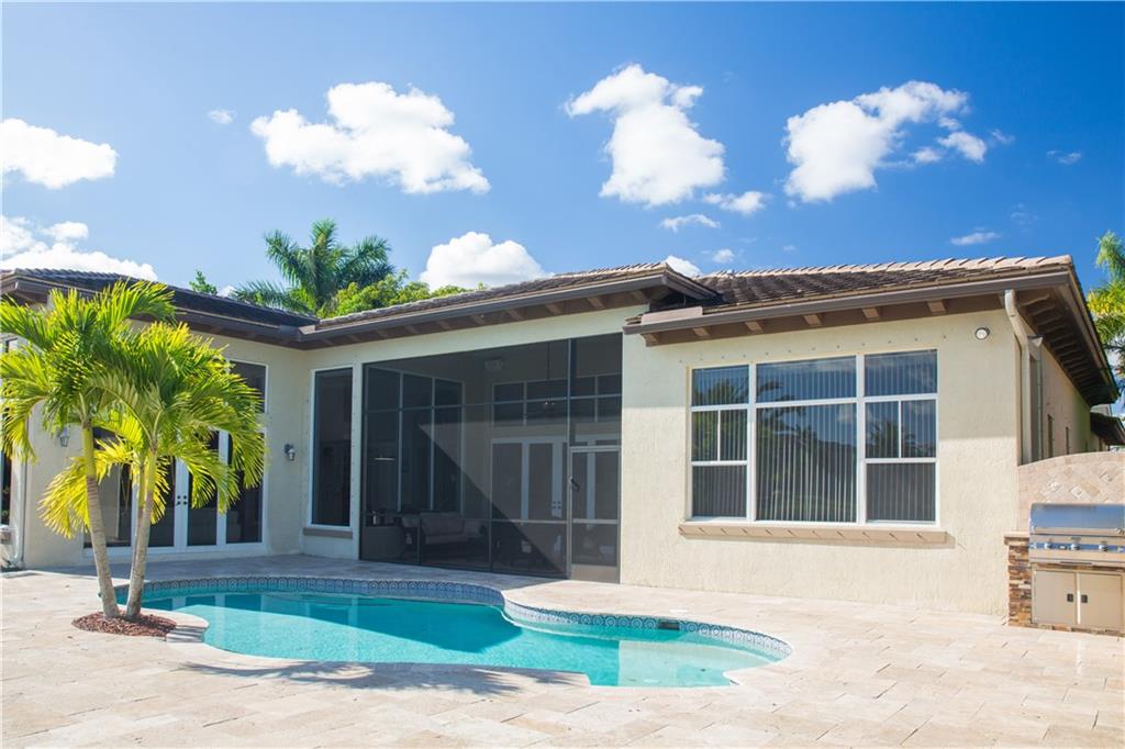 Widest water on approx. 1/3 acre of fully fenced lush landscaped lot*surrounded by Palms & expanded marble pool & deck*summer kitchen*14 Ft. high ceilings w/crown molding throughout* all closets fully built in*French doors*custom window treatments *Delightful chef's kitchen*w/stainless steel appliances double oven* pantry*Over sized Master BRM with large sitting area & an unsurpassed view*Master Bath fit for Queen*4'rth BRM used as a play room/office*Garage has systems*walk-Heron Bay-Plaza Del Lago Club