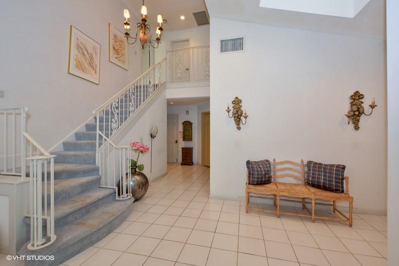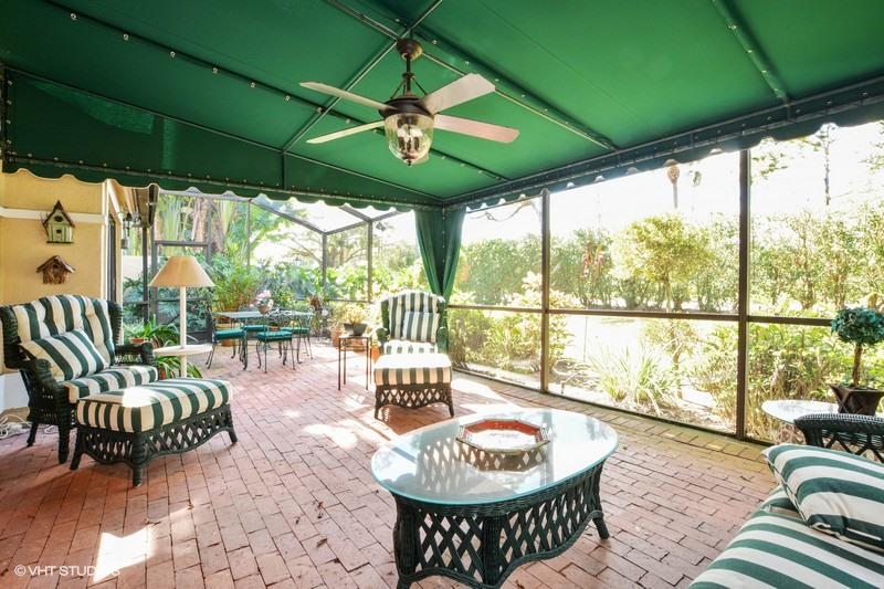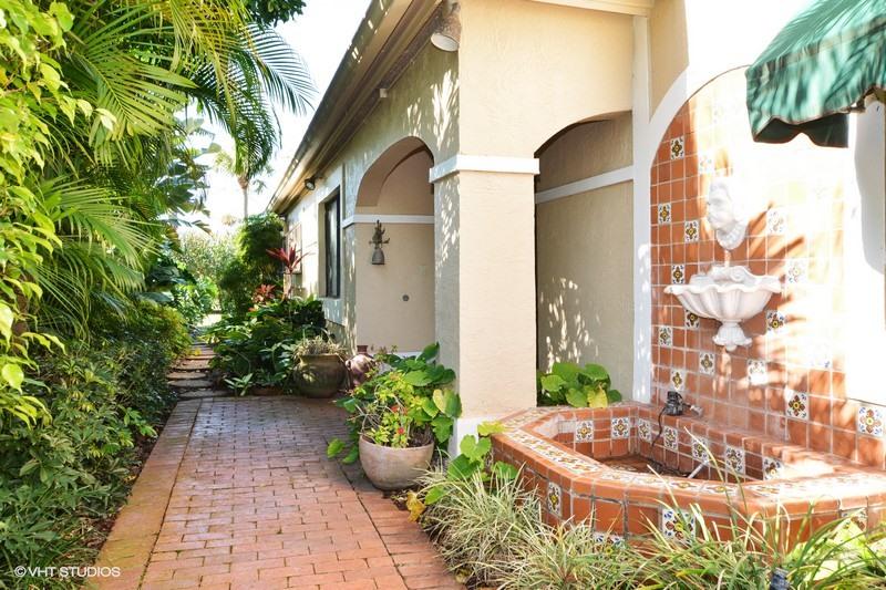 Exquisite home with sophistication. features: master down, open patio along with a covered patio ideal for casual entertaining or just relaxing and soaking up the Florida sun and breezes. Formal entry with gate and fountain leads to the double door entry and foyer. Formal dining room for those special occasions. Spacious living room overlooking the patio and garden beyond. Expansive gourmet kitchen with eat in area and custom wall buffet cabinet. Relax in the den/study. Grand master suite with sitting area. Lavish master bath with European tub, separate shower, dual sinks. Ascend the stairs to two guest bedrooms and guest bath. Laundry room and two bay garage complete this home of distinction. Do not miss this one!