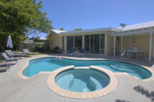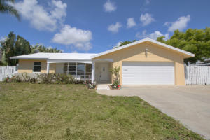 This lovely well maintained 3 bedroom 2 bath home with gorgeous pool is just waiting for the right family. Needs some updating. Shows really well. Sellers maintained much TLC. Glass enclosed Florida room overlooking pool creates a peaceful setting. Park your boat or RV in the side yard. Deepwater canal behind yard that brings you to intracoastal waterway with 2 fixed bridges. Owner will install brand new Air Conditioner upon acceptance of contract by all parties prior to closing. Owner is motivated. Bring all offers. East location very near to beach and Mizner park.