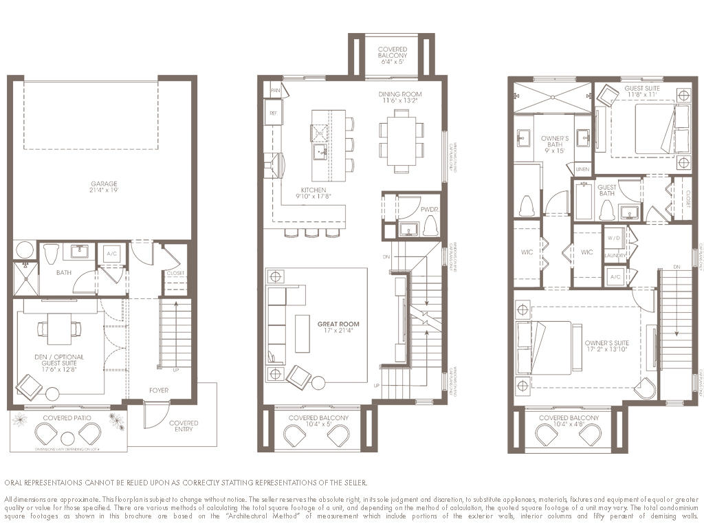 Stunning contemporary architecture in a private community of 75 residences. Our Floorplans offer open living areas and flexible spaces on multiple levels. Great room living area promotes a spacious and bright Florida lifestyle with 10 foot ceiling and 9ft sliding doors. Interior finishes offer the latest upscale flooring and European cabinetry. Decorators Unlimited beautifully designed two on-site Models, available for viewing 7 days a week! Plan One offers open living areas and flexible spaces. The Kitchen, Dining Room and Great Room create convenient open living while a first-floor hideaway provides an escape that can be converted into a Den or a third Guest Suite. Photos are our staged model.