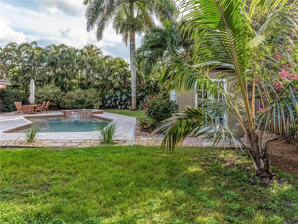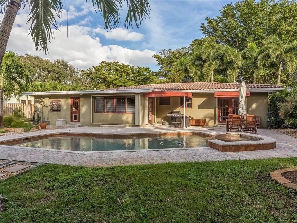 Fantastic 3/2 with pool , indoor laundry- updated kitchen , luxurious backyard with lush landscaping , additional garden house in backyard. House has nest , smart locks , and cameras.