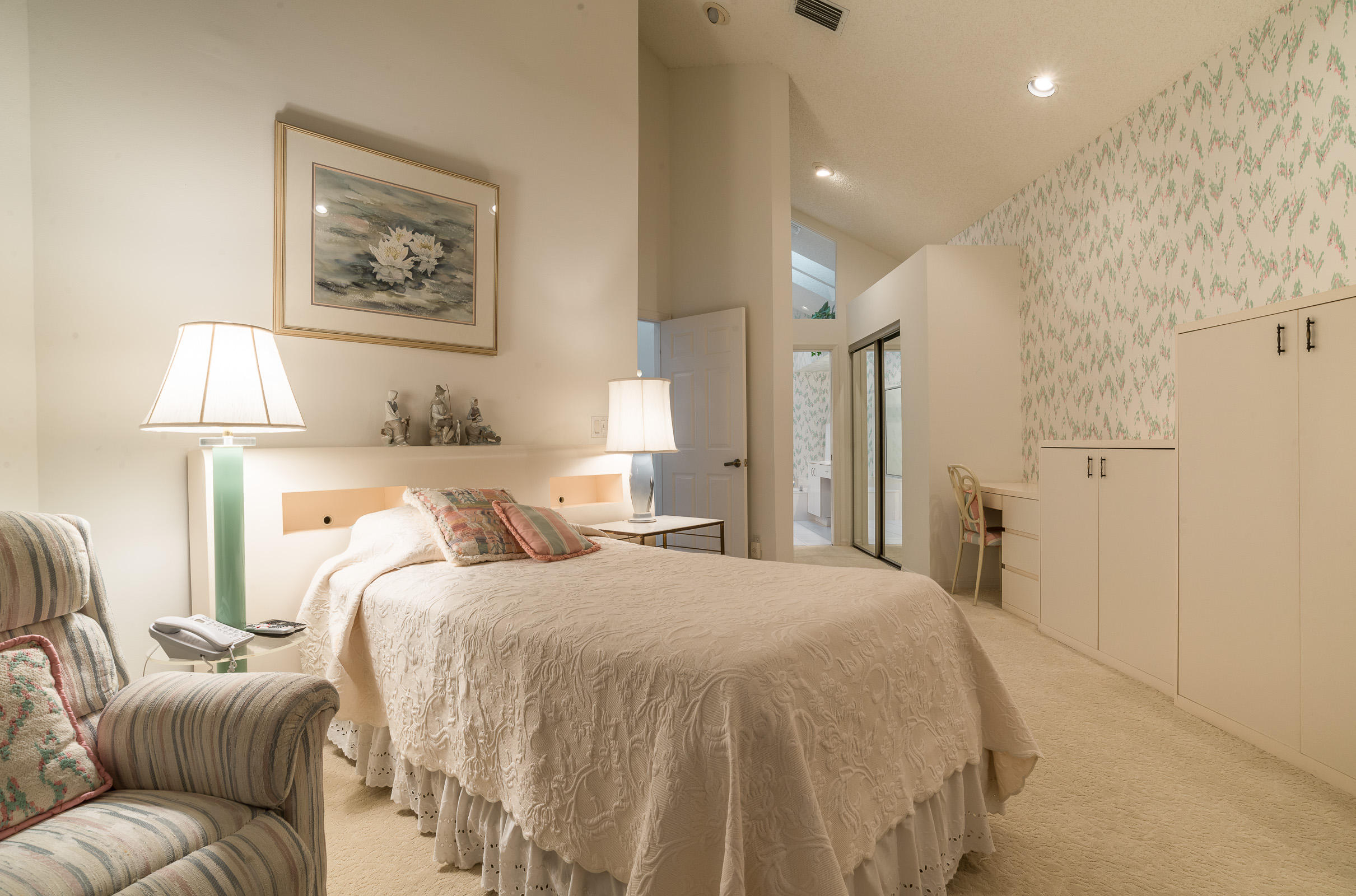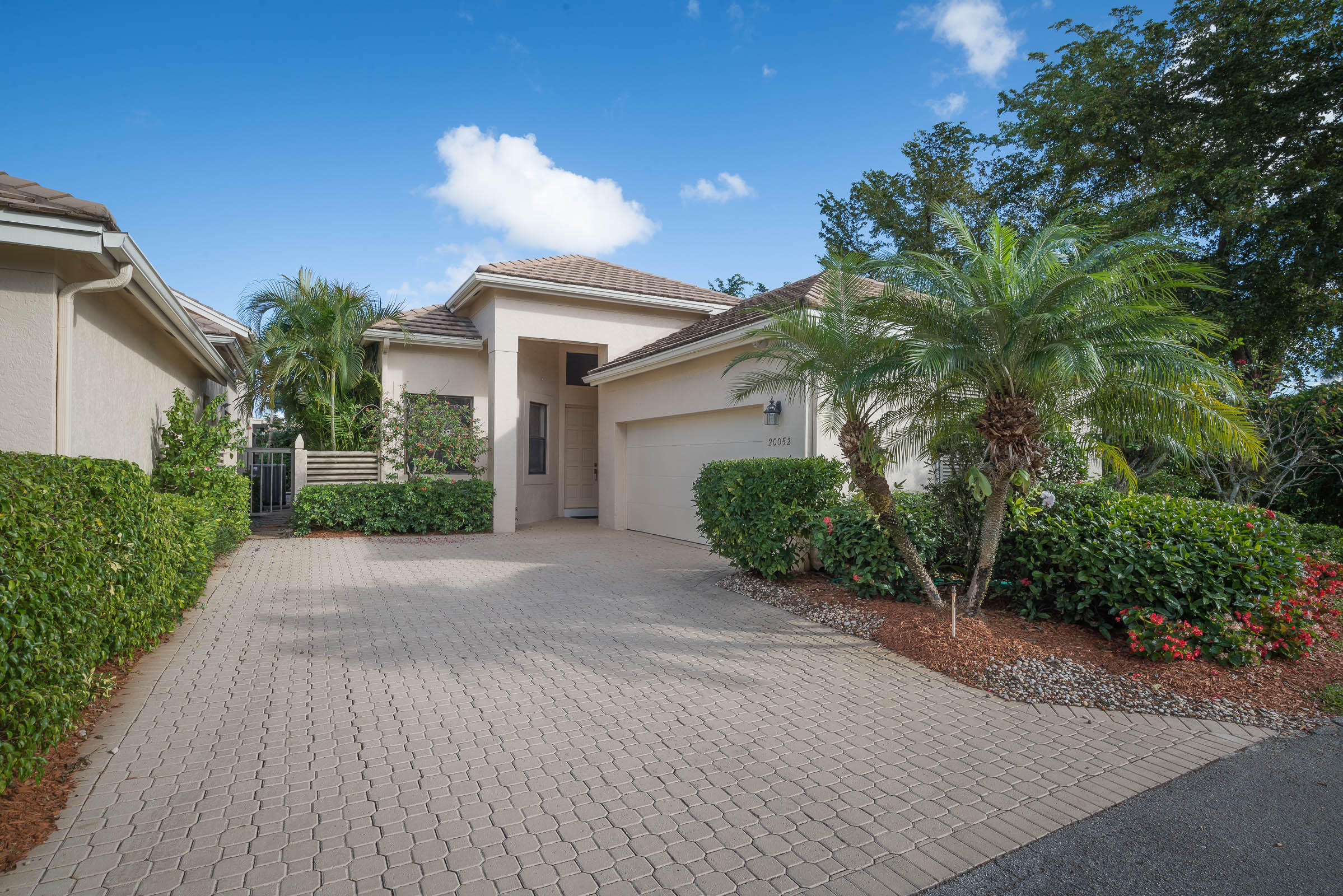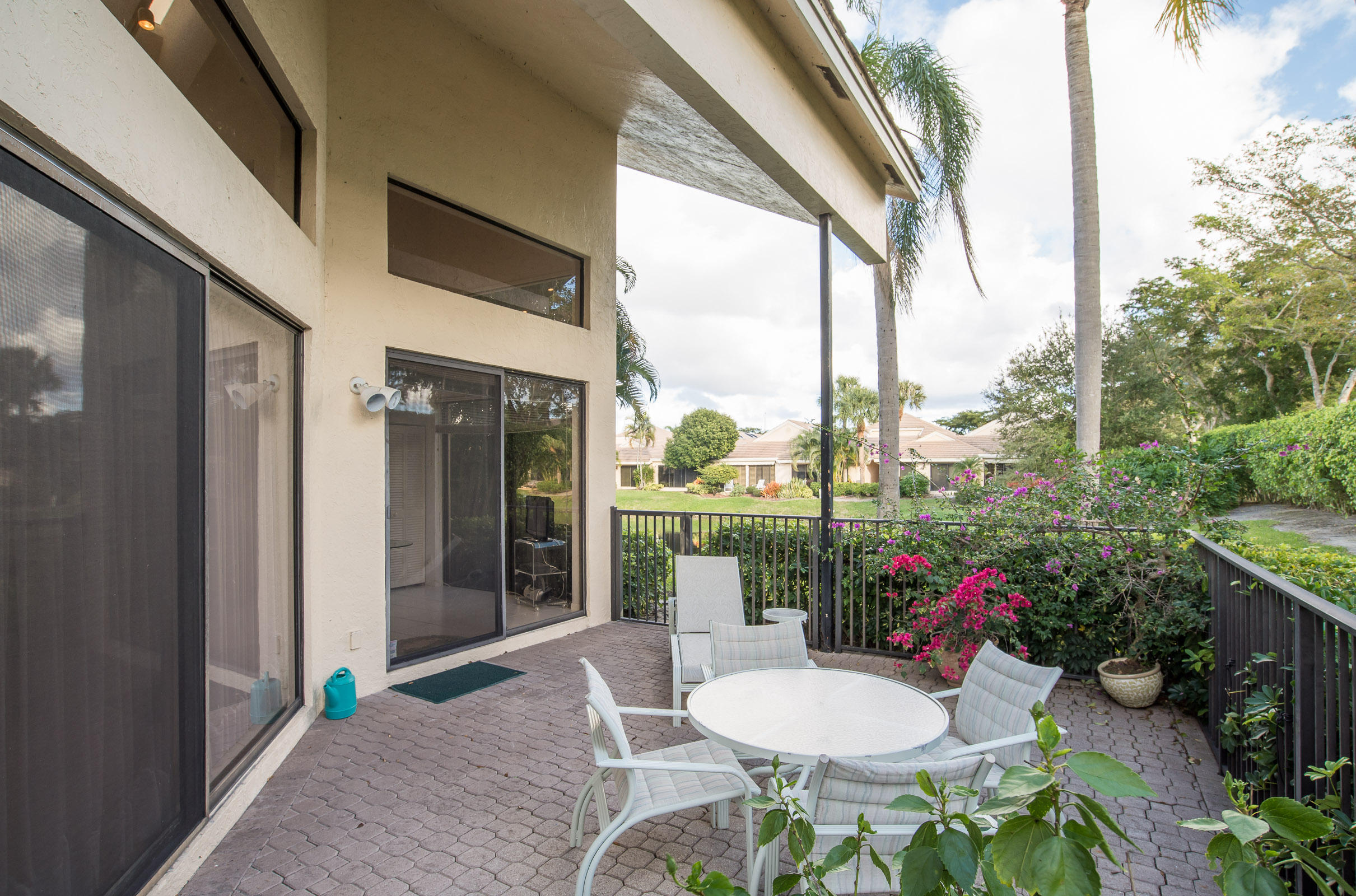 Beautiful 3 bedroom, 3 bath free standing patio home. Large patio with beautiful landscaping on corner lot. High ceilings with sky lights. 3rd Bedroom set up as office/den/bedroom. A very light and bright home. Beautiful water view. Eat in kitchen with newer appliances. Furnishings negotiable. Club membership required. Open, spacious floor plan. Three way split bedrooms with second bedroom ensuite. Beautiful porcelain tile throughout. Newer garage door.