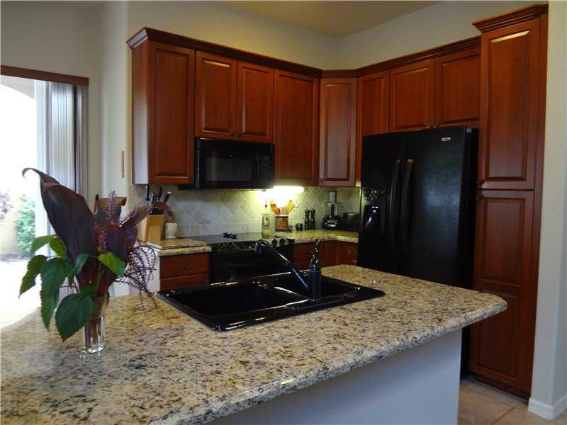 Lovely 2 story 3 Bdrm. 2.5 Bath Home. Immaculate Updated w/Accordion & Elect. Hurricane Shutters. Beautiful Renovated Open Kit. w/Cherry Wood Cabinets w/Pull Out Shelves, Granite Countertops & Tumblestone Marble Backsplash. All Appliances '09. A/C Compres sor '09. 1st stry. w/Porcelain Tile Flrs. 2nd stry & stairs w/Cherry Hardwood Flrs. Mstr. Bdrm ste. w/lovely Sitting Rm. & Mstr. Bath w/Seamless Glass Shower Door. Lush Landscaping, Beautiful Patio, Beautiful Home! EZ Walk to Pool & Houses of Worship.