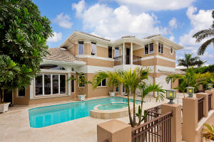:Big price change.A lot of custom features to be listed in this decorator 4br + Office included.This striking executive style waterfront Home has 80 Ft of water frontage & loaded with extras! Volume ceiling in foyer living and dining room. Large open rooms welcome you to the first floor including a formal dining Room with lighted tray ceiling with views to waterway & Pool. A custom lighted glass block & granite wet bar is accessible from living area or from the family room with many custom built-ins. This granite kitchen features Granite, Stainless Appl. many Cabinets incl Glass Lighted accent doors & pull outs. High end Stainless appliances and Hidden down draft vent fan for the chef. No Power no problem this Home features Generator for the whole House. Electric Shutters in patio. More
