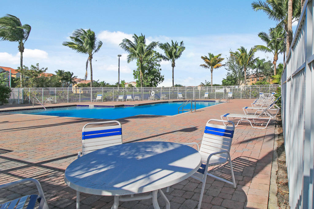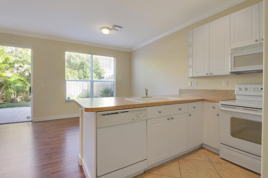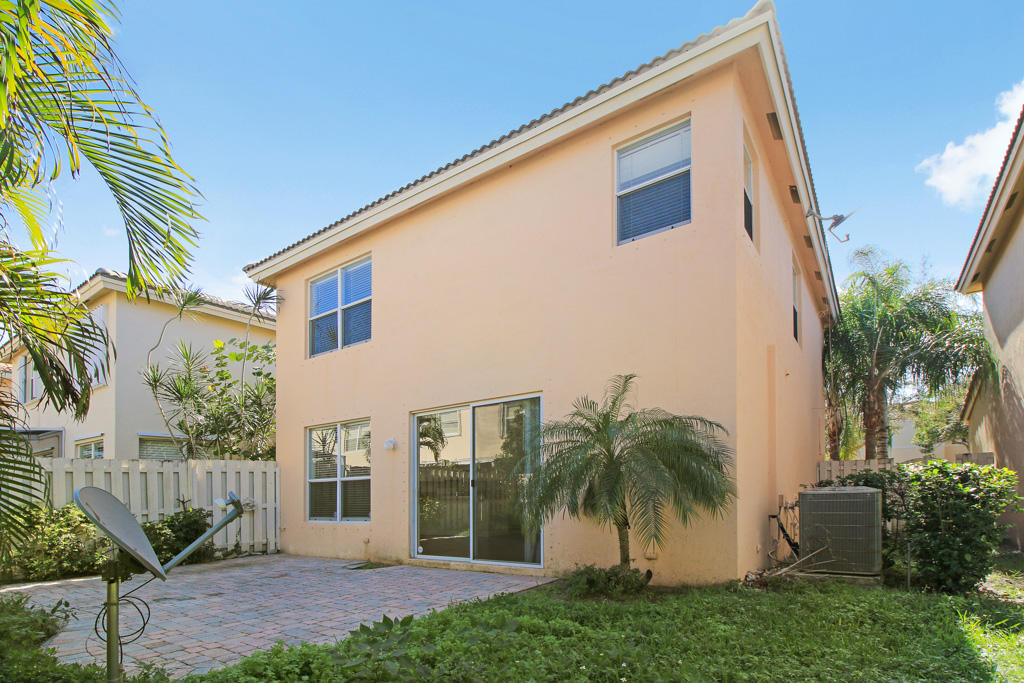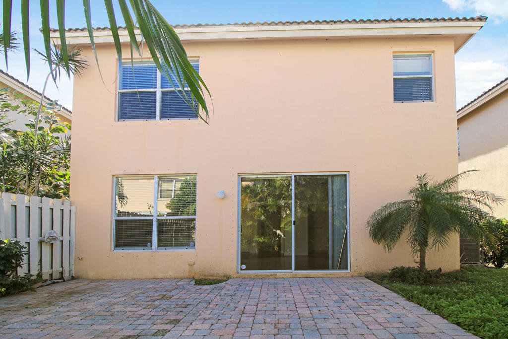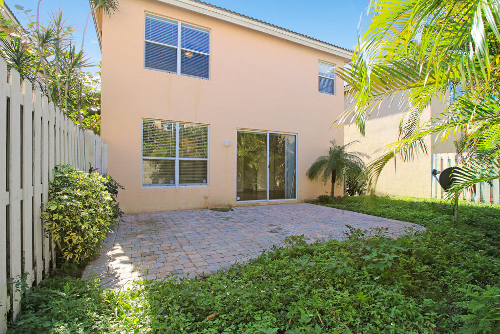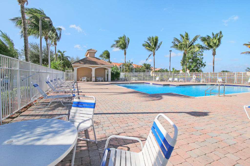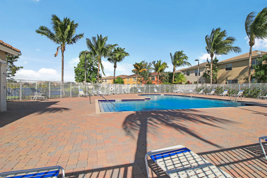 Move in Ready. Three bedroom 2.5 bath with an attached garage. The first floor has nicely sized living/dining room with an open kitchen and breakfast nook that shines in natural light from the sliding doors to a private patio and fenced yard. Spacious second floor bedrooms, a large master suite with dual sinks, shower and whirlpool tub in the master bath. Hurricane panels included. Community pool is a short two minute walk. Manned gate.