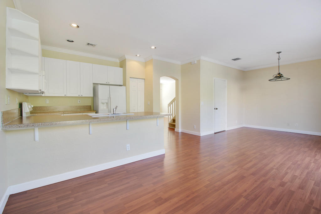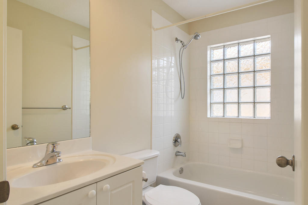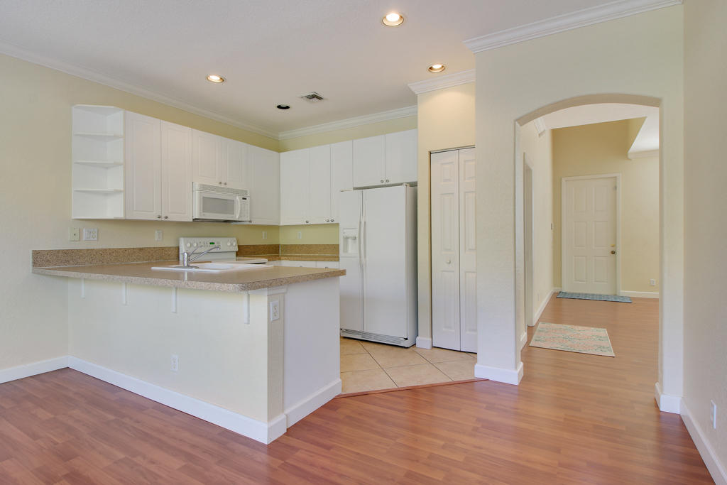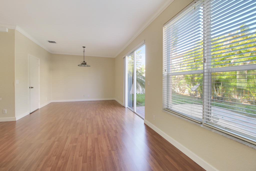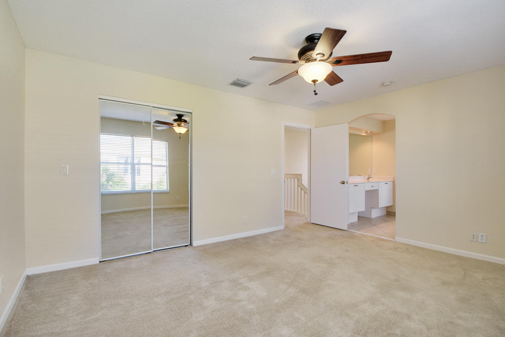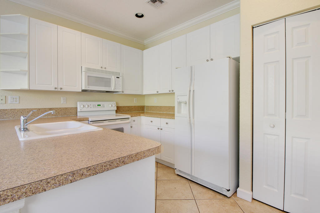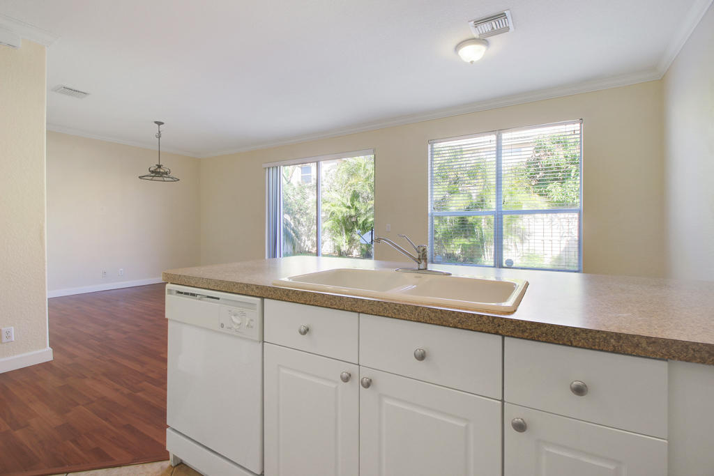 Move in Ready. Three bedroom 2.5 bath with an attached garage. The first floor has nicely sized living/dining room with an open kitchen and breakfast nook that shines in natural light from the sliding doors to a private patio and fenced yard. Spacious second floor bedrooms, a large master suite with dual sinks, shower and whirlpool tub in the master bath. Hurricane panels included. Community pool is a short two minute walk. Manned gate.