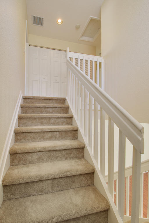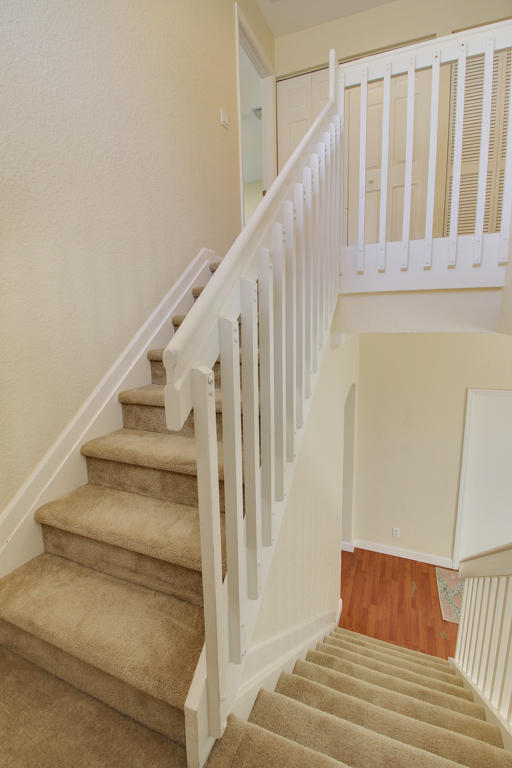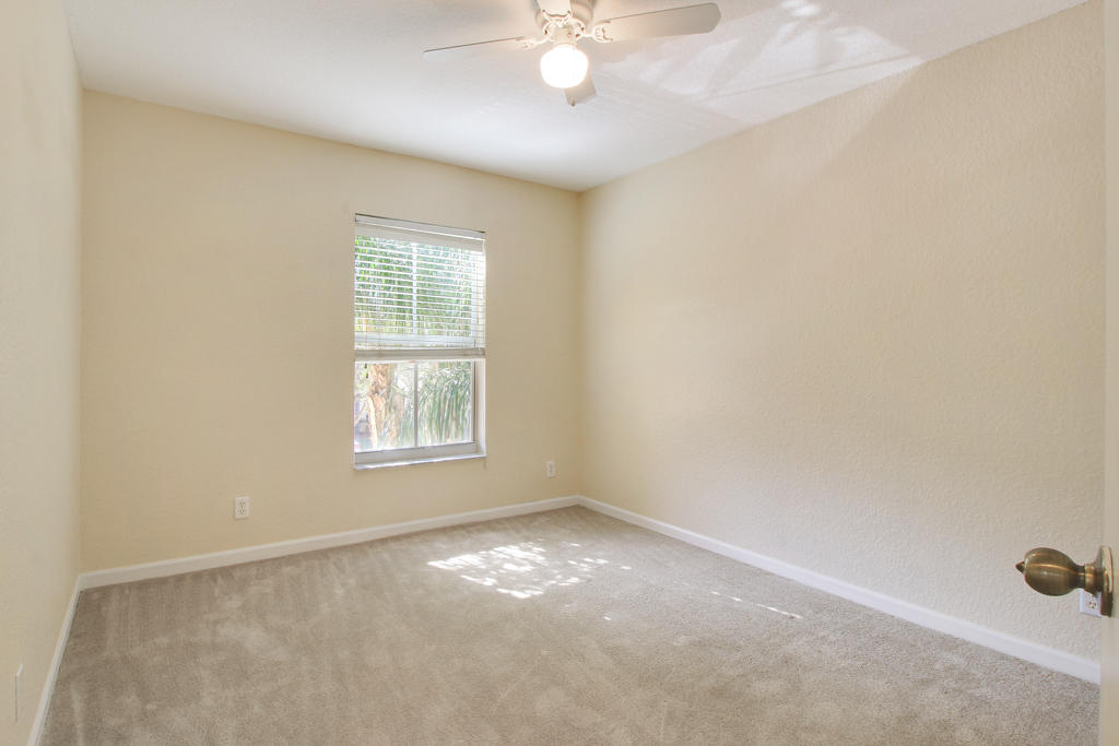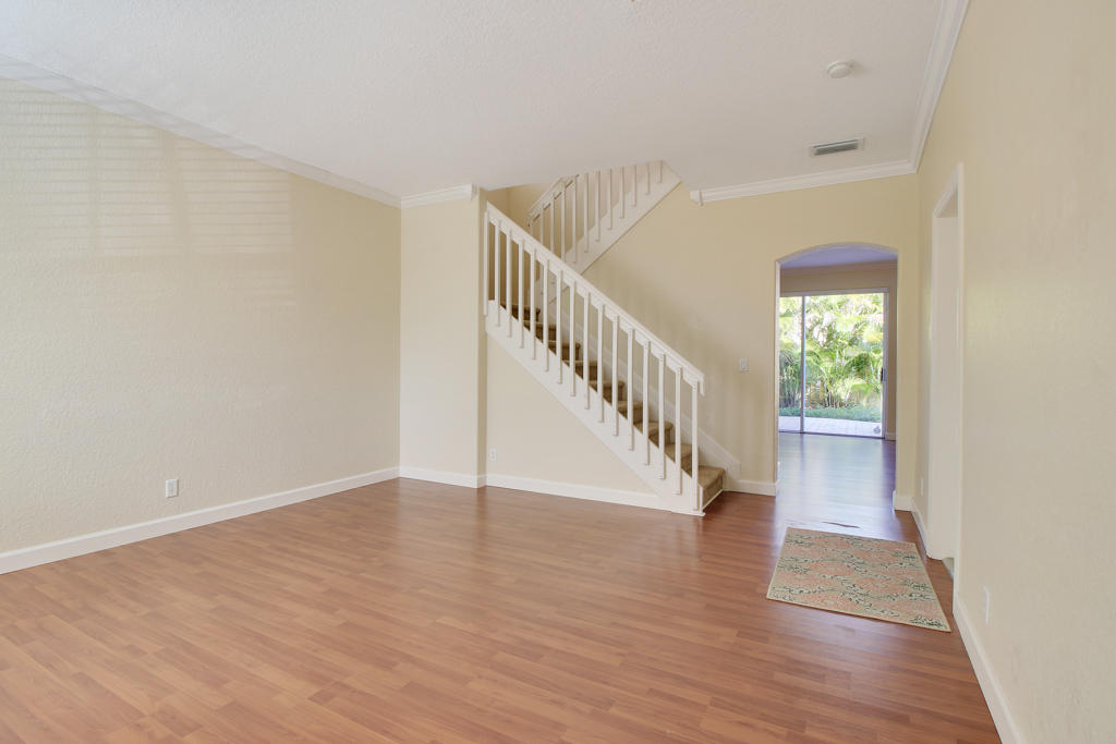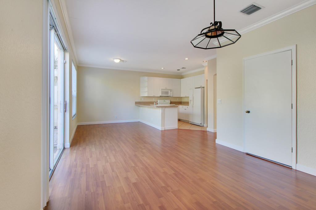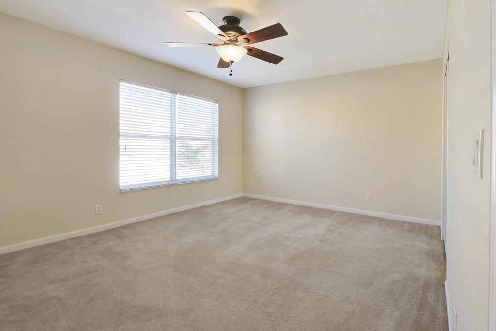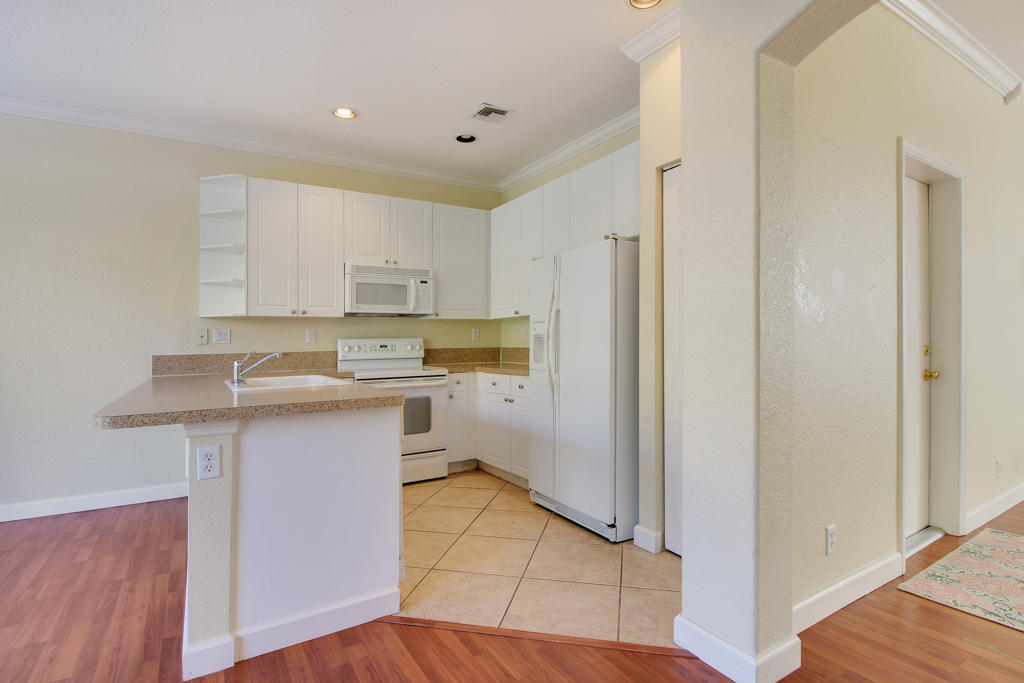 Move in Ready. Three bedroom 2.5 bath with an attached garage. The first floor has nicely sized living/dining room with an open kitchen and breakfast nook that shines in natural light from the sliding doors to a private patio and fenced yard. Spacious second floor bedrooms, a large master suite with dual sinks, shower and whirlpool tub in the master bath. Hurricane panels included. Community pool is a short two minute walk. Manned gate.