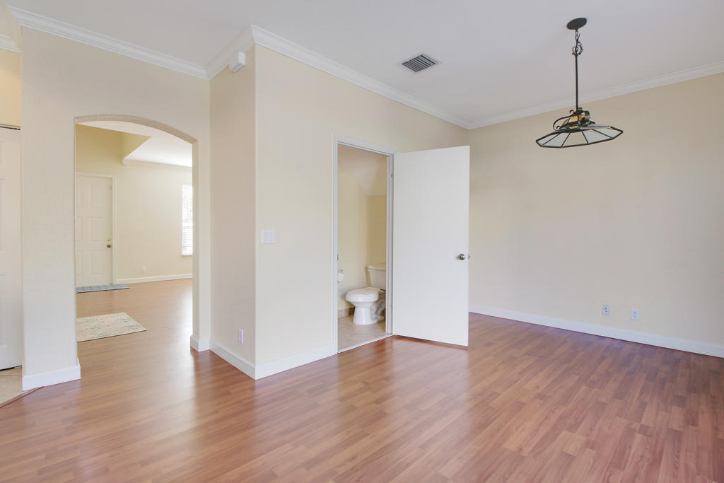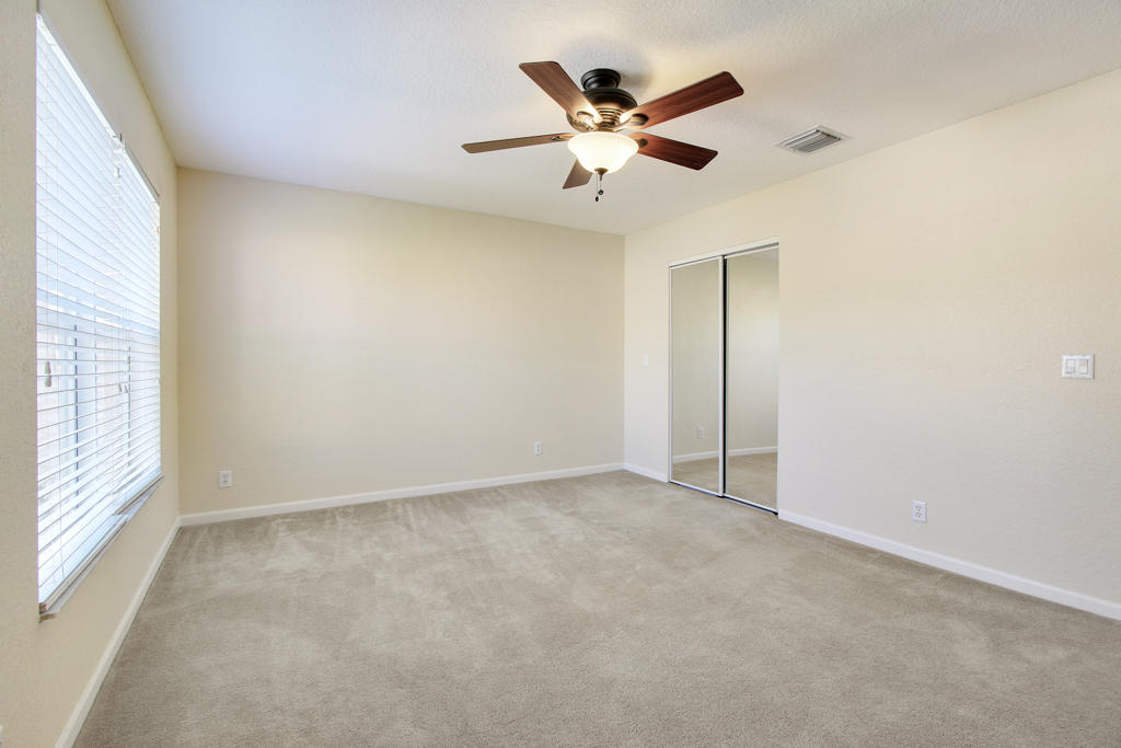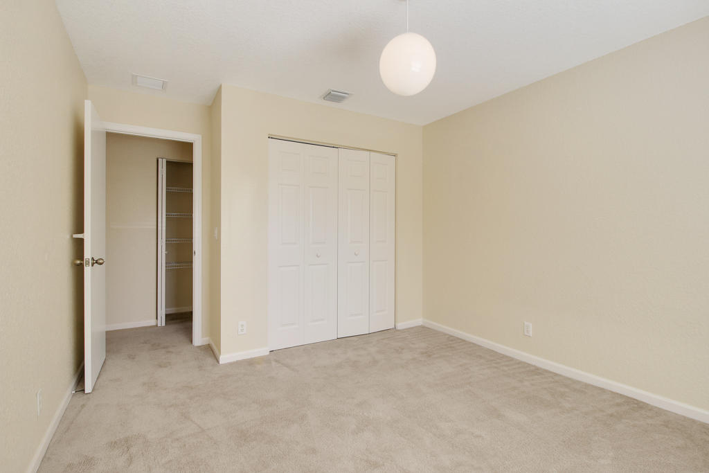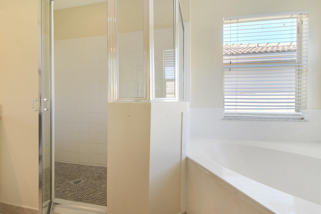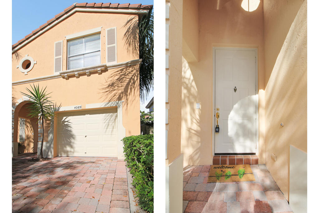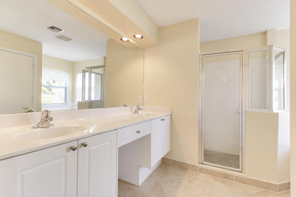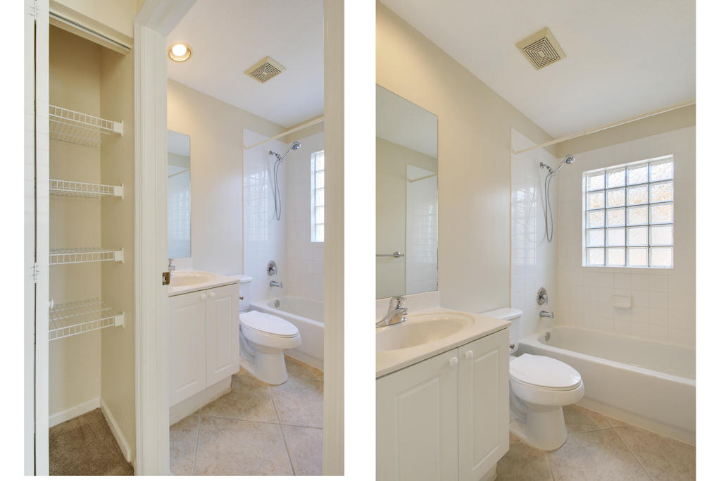Move in Ready. Three bedroom 2.5 bath with an attached garage. The first floor has nicely sized living/dining room with an open kitchen and breakfast nook that shines in natural light from the sliding doors to a private patio and fenced yard. Spacious second floor bedrooms, a large master suite with dual sinks, shower and whirlpool tub in the master bath. Hurricane panels included. Community pool is a short two minute walk. Manned gate.