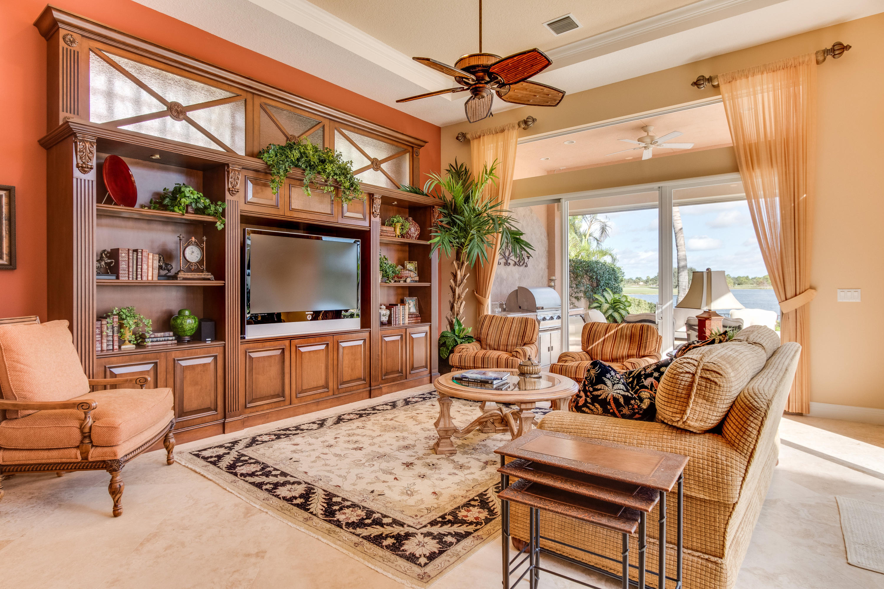PRICE DROPPED AGAIN! AMAZING DEAL! EXTRAORDINARY WATER/GOLF VIEWS! Feel like you're living at the beach!4 Bedrooms + den home w/ tons of upgrades. Impact glass! Generator! Marble floors in main areas,custom wood front doors w/ wrought iron trim, max crown & wall moldings. Professionally decorated by Decorators Unlimited. 3 zone A/C. Huge master suite w/sitting area, 2 walk-in closets. Gourmet kitchen. Family room built-in wall unit. Covered patio w/phantom screens & roll down shutters.Summer kitchen w/grill, sink, fridge, & new ice maker. Oversized, heated ''pebble tec'' pool & raised 8 person spa w/NEW pool heater, Jandy controls. Custom landscaping & lighting in back. Irrigation from lake. 2.5 car garage w/ epoxy floor & storage closet.Move in perfect. BEST WATER VIEW ANYWHERE!!!