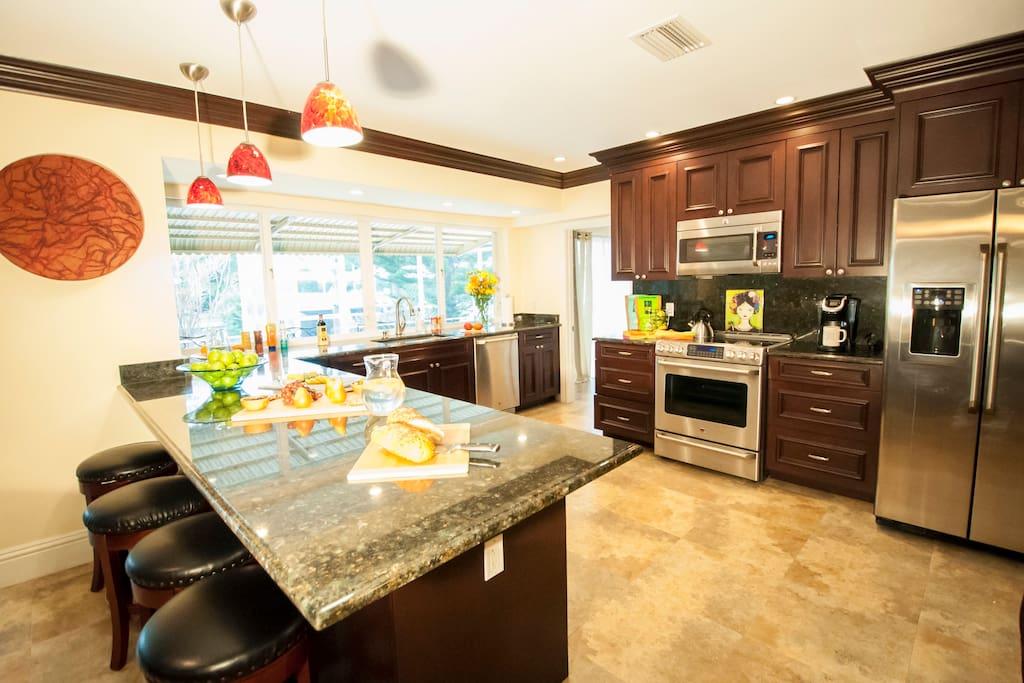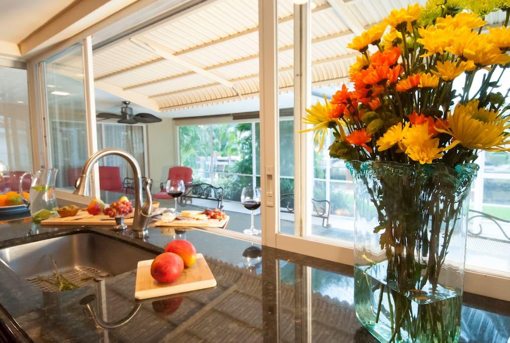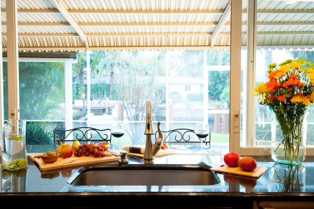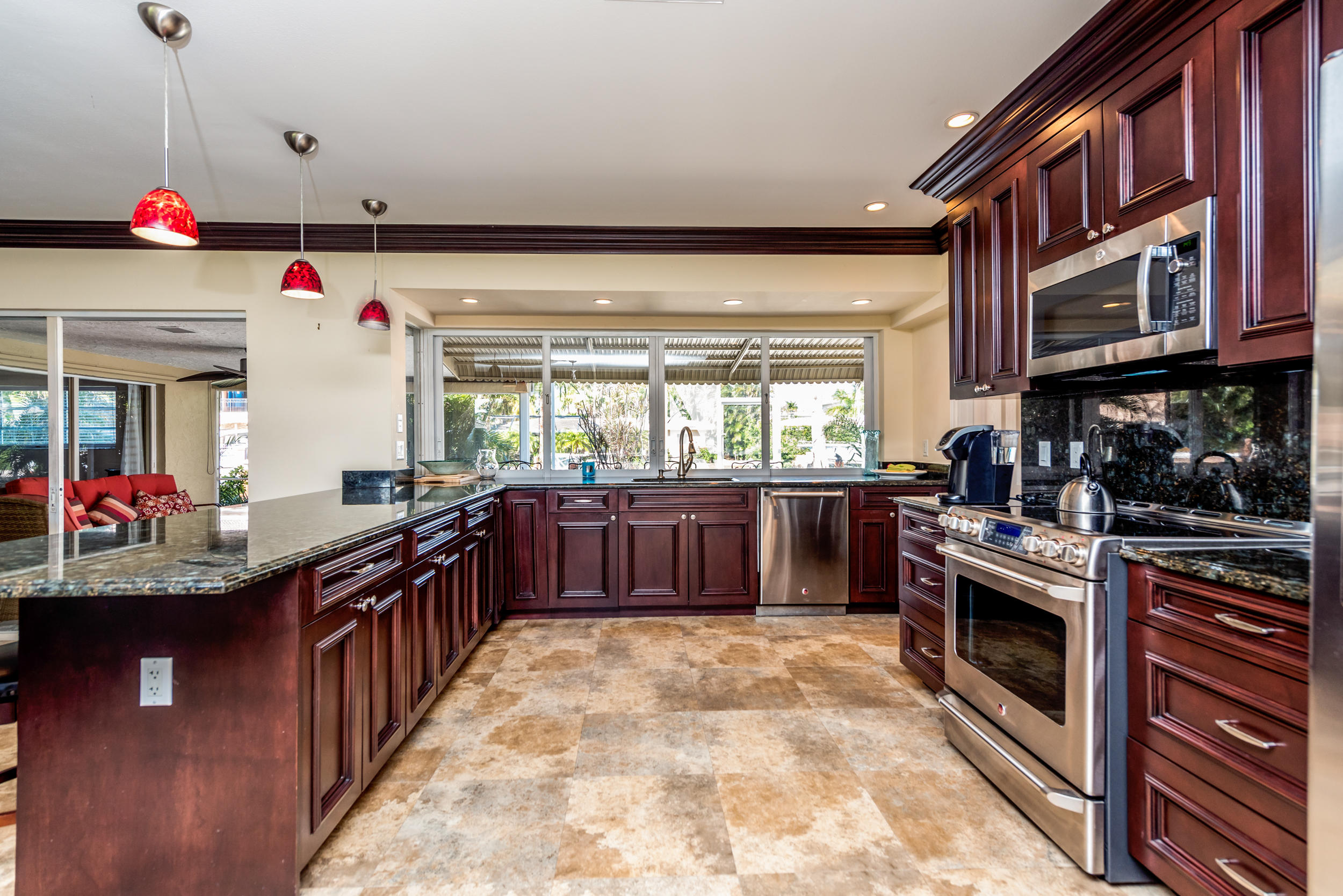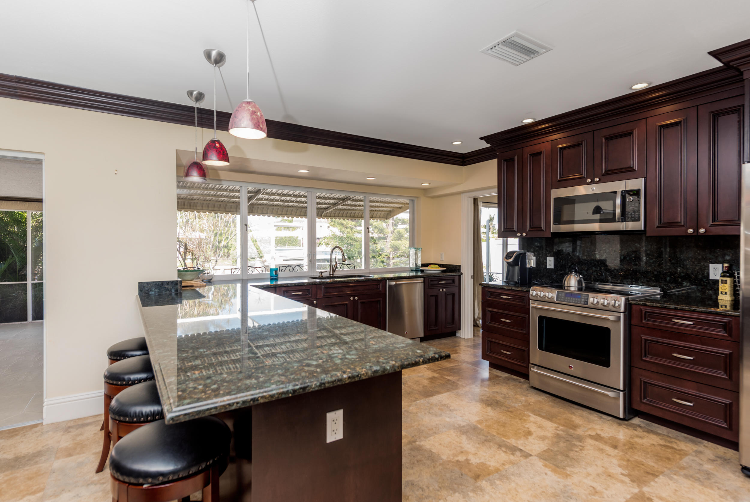 Nicely renovated home with 80' feet of waterfront and 60' dock, 3 bedrooms 3 baths, open kitchen, granite counter tops, stainless steel appliances & bar. All 3 baths & flooring have been updated throughout with high end finishes, split bedroom plan, large screened in covered patio, concrete cap & batter pilings. Great location just minutes to Atlantic Ave, Mizner, Beaches, Lake Boca and the Ocean!!