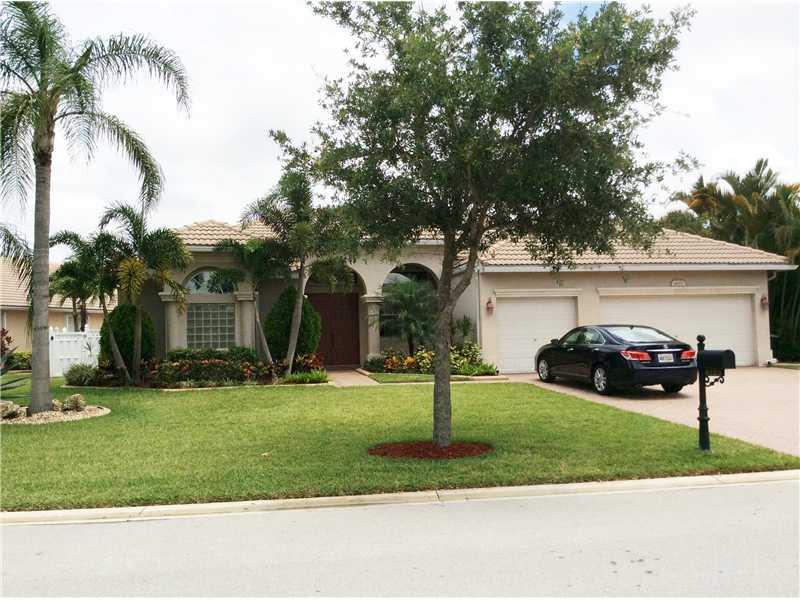 Beautiful triple split 4 bedroom, 3 bathroom, 3 car garage, large fenced backyard w heated pool house in elegant Grand Reserve community of Coral Creek. Fitures: gourmet kitchen w granite counters, island, built-in double oven, wine cooler, new energy eff icient A/C, extended patio, accordion hurricane shutters. Walk to resort style clubhouse w fitness center, billiards room, children's playground ...etc. All "A" rated schools.