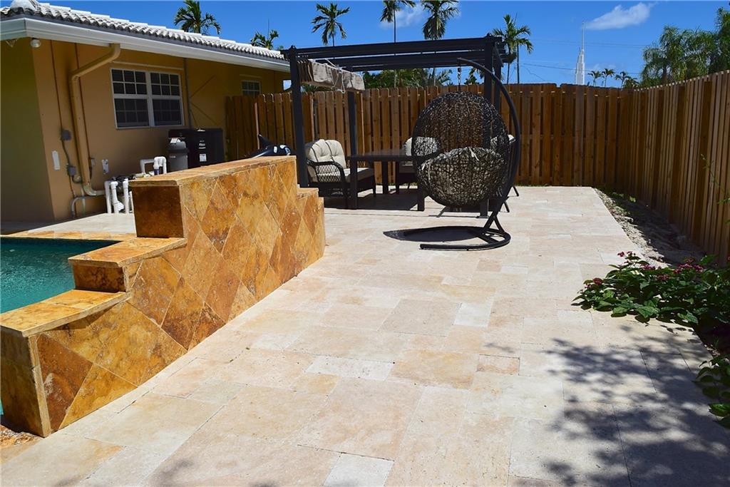 Beautiful & updated 3/2 pool home located in desirable Ft. Lauderdale neighborhood. This home has been completely remodeled: updated electrical, a/c, impact windows, tile & laminate wood flooring, knockdown textured walls & ceilings. Beautiful kitchen w/ S/S appliances, granite countertops, wood cabinets & soft close drawers. Remodeled baths. Home sites on an oversized fenced, corner lot w/ circular driveway. Amazing new custom pool w/ Mosaic design, River Rok surface & Travertine patio & pool deck.