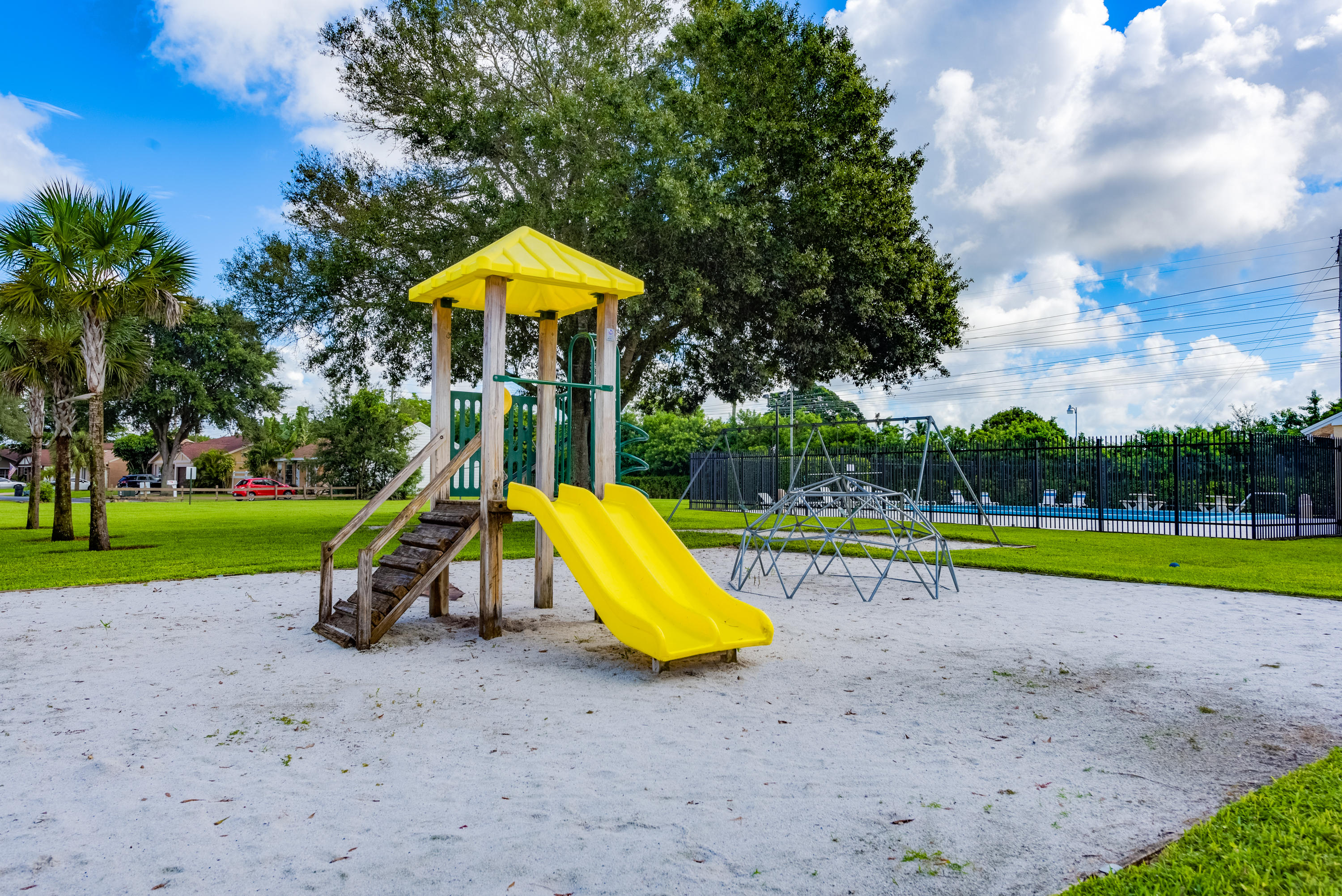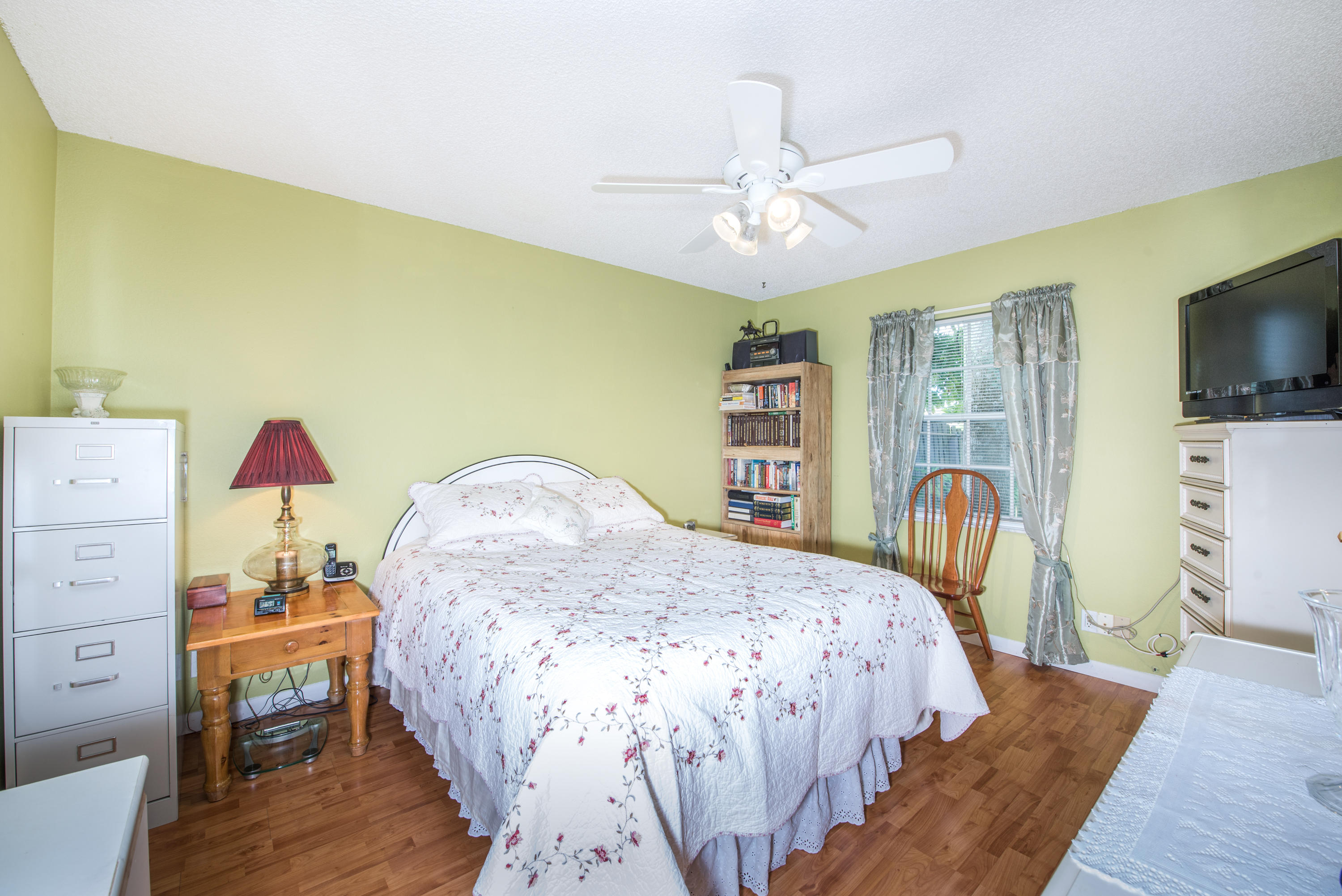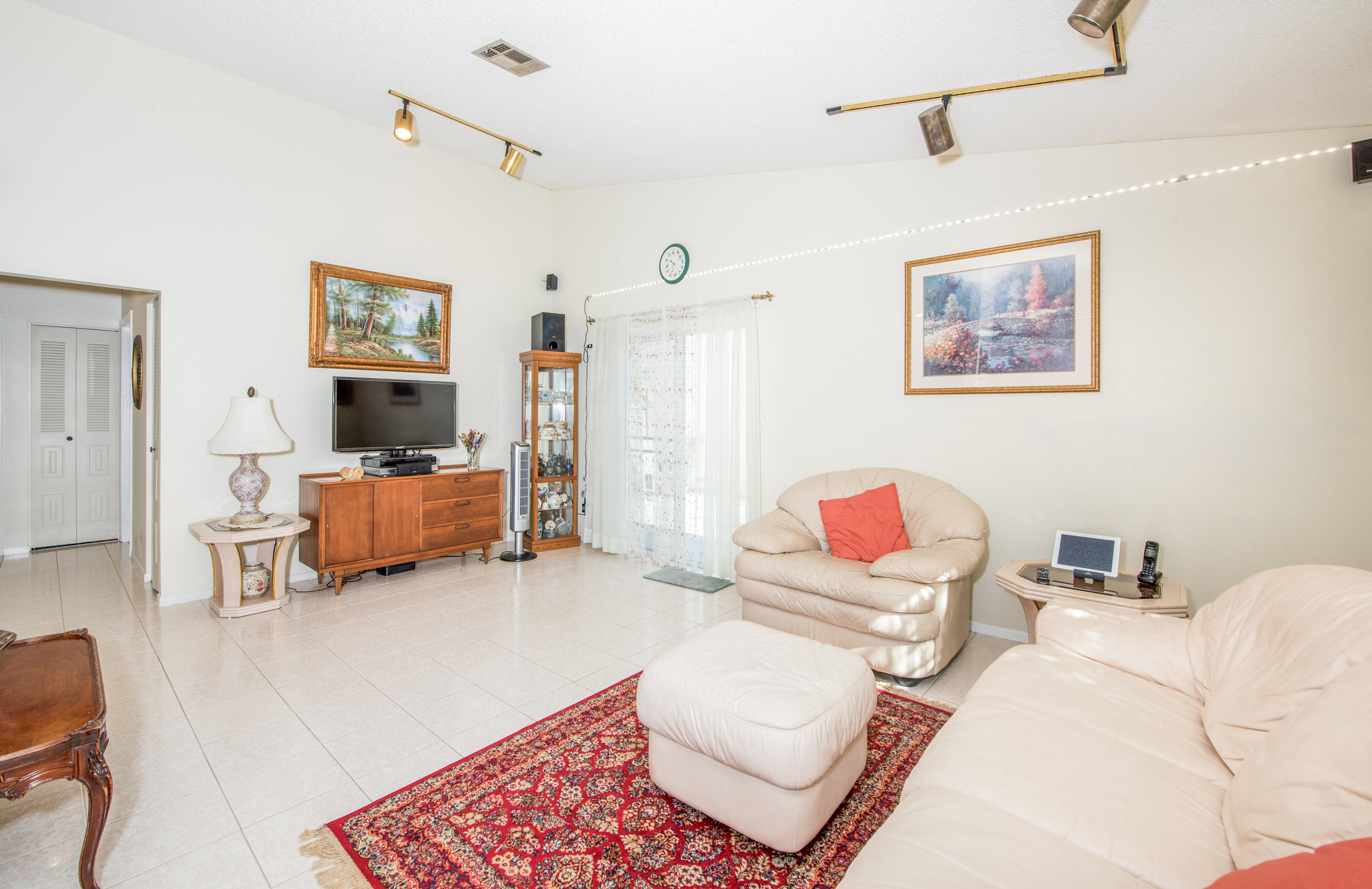 Beautiful charming 1 level ranch home in Tudor Woods. Lots of original charm and immaculately maintained. This home features a nice long canal view with a fully fenced in yard with extensive privacy. The lot feature a padded concrete pad on the side ideal for boat or RV/Vehicle storage or room for entertaining. The rear yard affords abundant fruit trees affording plenty of shade. Soaring vaulted ceilings throughout give this a wide open feel. All the rooms feature a view of the rear yard and the canal. Plenty of parking for 4+ vehicles, expanded driveway. Lots of natural and added lighting throughout. New stucco siding and insulation, newer AC unit, new garage door, fresh paint ready for your finishing touches. The home is just a few doors down from the community pool and the playground.