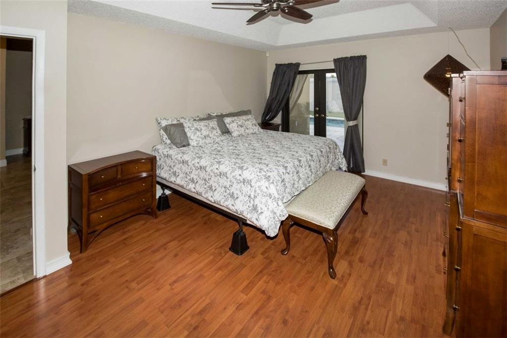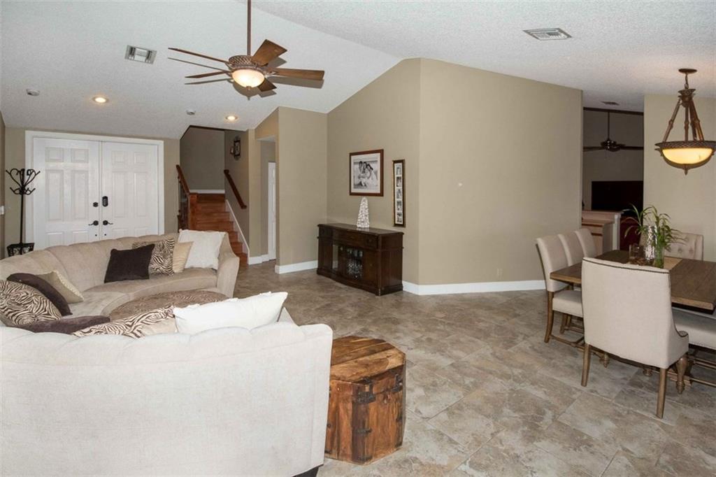 Beautiful curb appeal, beautiful home, lushly landscaped, double door entry looks out to pool w/spill over heated spa and huge stamped concrete exterior deck. Soaring ceilings, French doors in livingroom, familyroom & master suite exit to pool/spa patio area. Tile flooring in living areas, laminate in bedrooms, & stairway. All 3 bathrooms updated. Master suite & second bedroom with full bath downstairs. 3rd and 4th bedrooms upstairs with full bath. Close to major malls, highways & schools