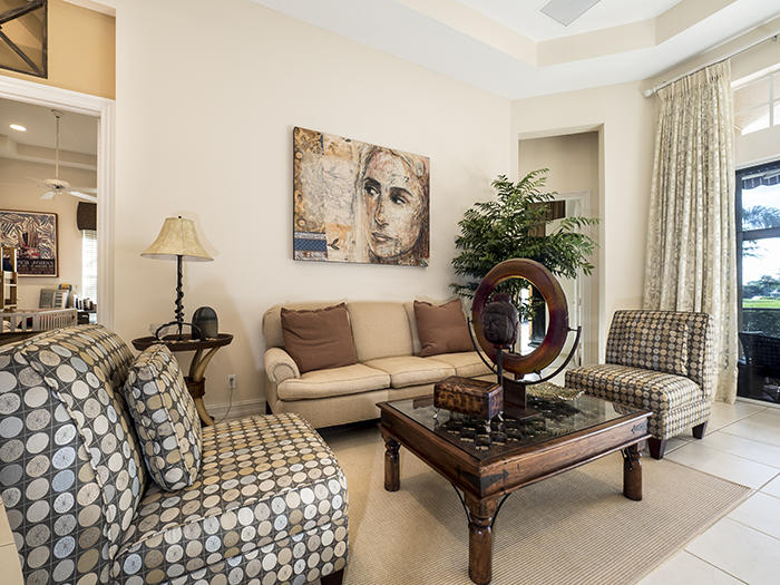 Incredible premium water and golf overlooking a signature hole. Premium, oversized, south-facing Cascaya lot with long picture-perfect views! Enjoy this open 3BR/3BA+Den with a new roof. Whole house water filtration system, high quality screen for the lanai, newly installed awnings. Lovely designer touches, fully screened pool and spa, open kitchen to family room, high ceilings. Walk to the club, close proximity to Ibis's front gate gives this home a convenient location.