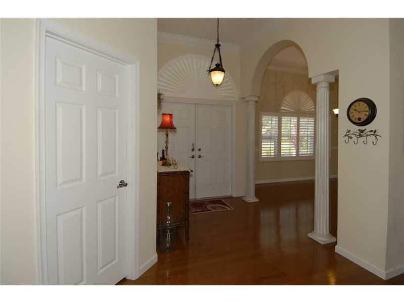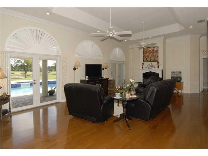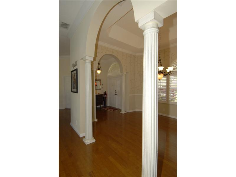 DEFINITION OF MOVE IN PERFECT! Spectacular 5BR/4BA home on almost 1/2 acre lot with views of the water & golf course. Open floor plan, volume & tray ceilings, crown molding throughout, Pecan Wood flooring in living areas & master bedroom. Kitchen has Kraf tMaid wood cabinetry, granite counters w/ stainless steel appliances including a Jenn-Air built in convection double oven, cook top & Bosch dishwasher. Oversized heated open pool & spa with pavered deck just perfect for entertaining. This one is a 10!
