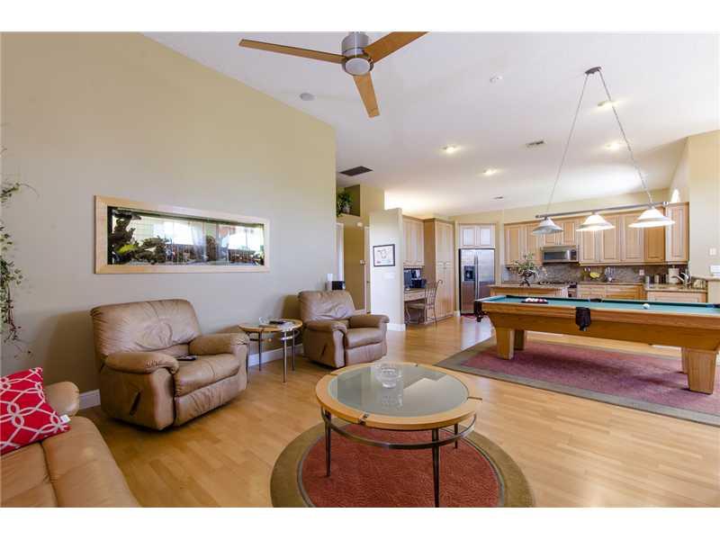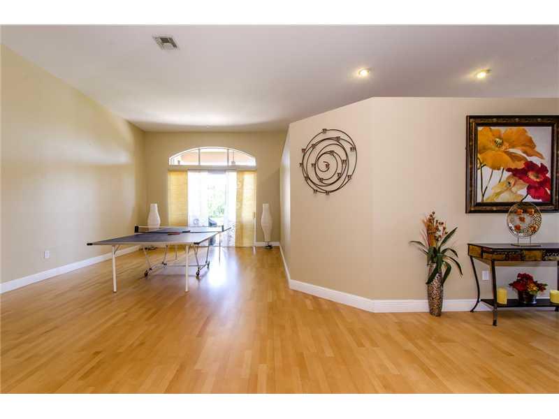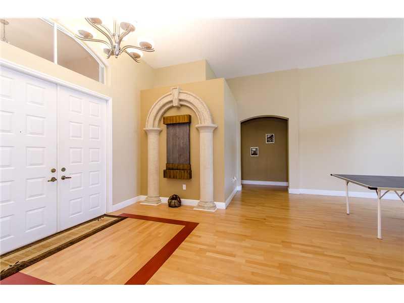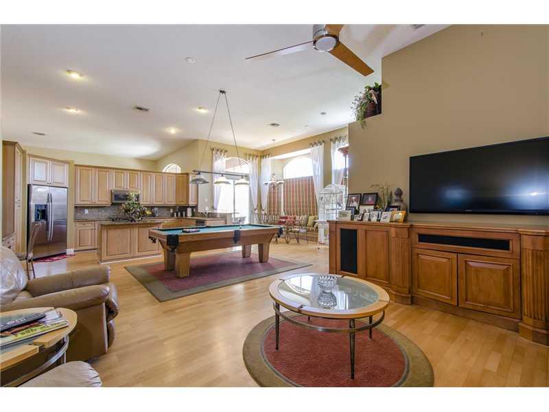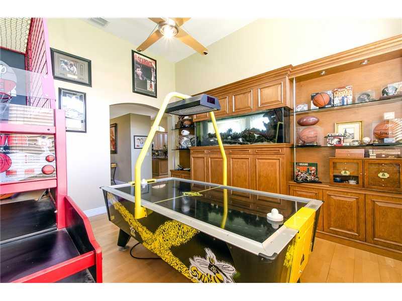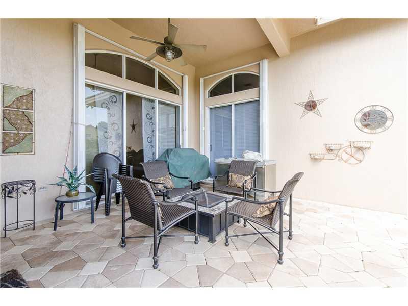 Buyer looking for a special home? This is it! 4/3 on over sized waterfront lot 25x40 patio with pavers. 3 car garage, accordian shutters, 12 ft ceilings, huge 25x25x16 family room, upgraded kitchen, granite, s/s appliances. built-in desk, roll out shelves in pantry, 16K upgraded engineered wood flooring throughout. Built-in fish tank stays. Cabana bath, lots of decorator accents and much more. Come see it today!