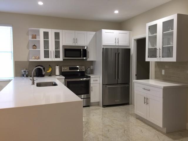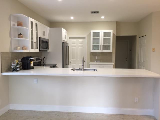 Beautifully updated in 2016. Home located in desirable East Boca near beach and shops. 2 story model with open floor plan, and new roof in Dec 2016. Newly renovated with designer decor, white quartz kitchen peninsula with seating for five, new stainless steel appliances, white cabinetry, New 24'' porcelain tile throughout first floor, interior newly painted with neutral colors. All bedrooms second level. Gorgeous renovated Master bath, Large pavered screened-in patio. manned gated community, Pets ok, boat dockage available. Just move right In!! Trucks allowed must be parked in garage. A must see!