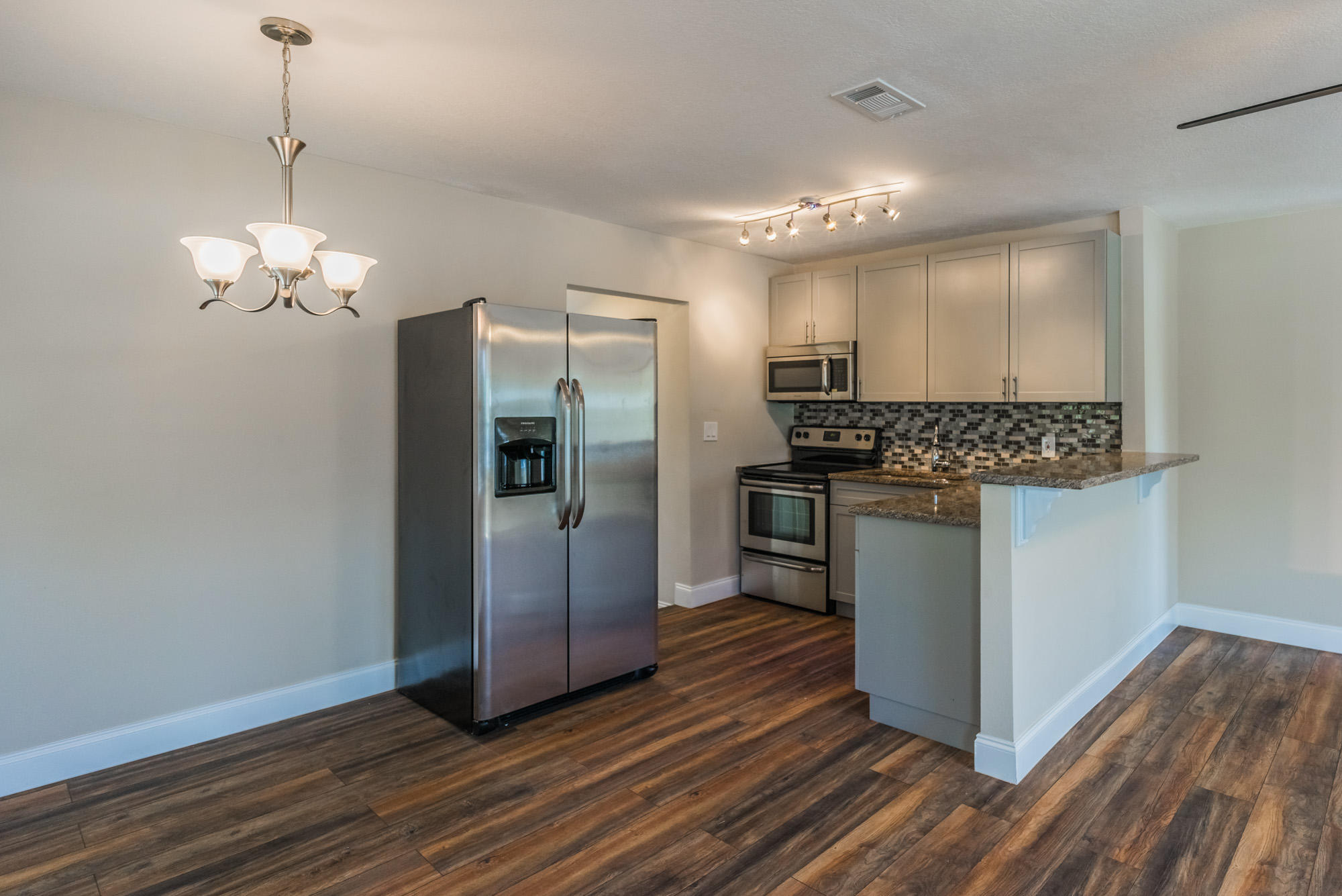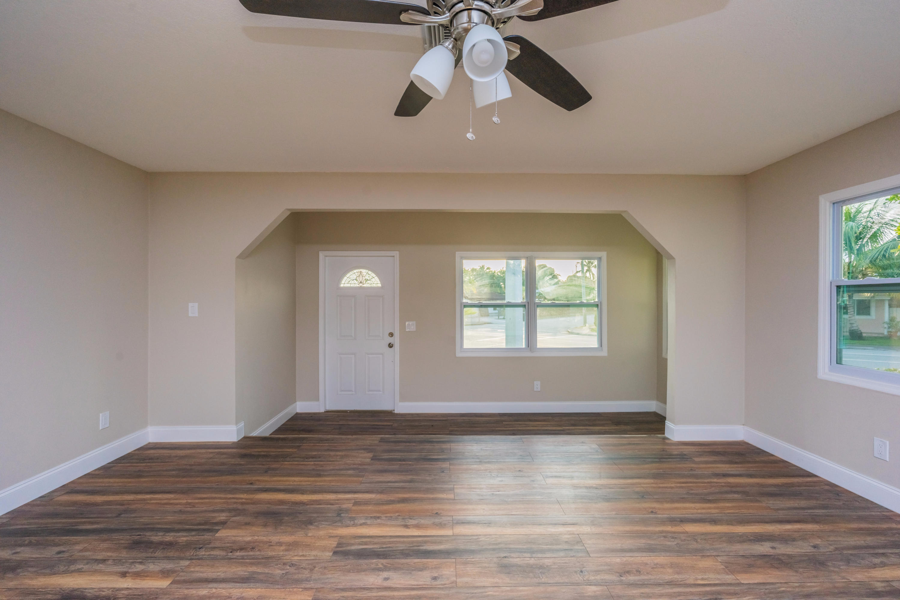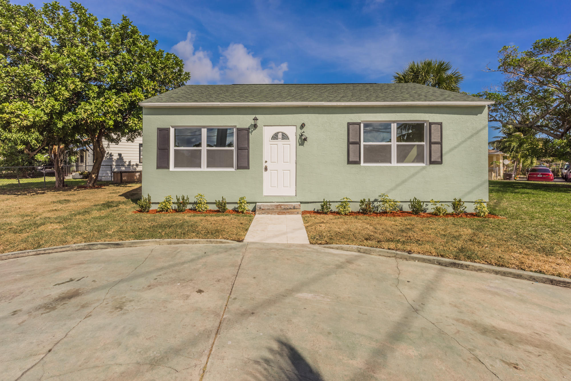 One of the few remaining opportunities to own a completely rebuilt house for under $200K in WPB, East of I-95. Features an open and bright floor plan with hardwood floors throughout, brand new stainless steel appliances, granite counter tops and modern backsplash. Everything in this house is NEW with the exception of the roof. Retaining wall and every stud in the house is brand new. Impact insulated windows, hardwood floors, stainless steel appliances, electrical, plumbing, A/C, granite counters and cabinets are all NEW. OVERSIZED corner lot.