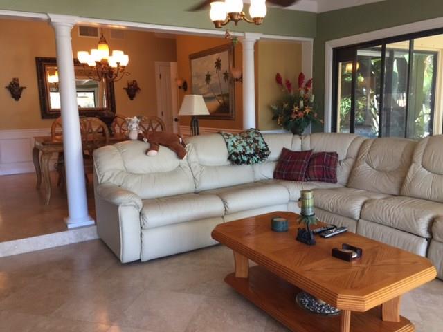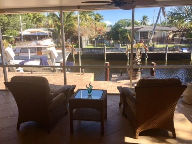 Wow! Welcome to your own private waterfront walled oasis! This home has been spectacularly renovated in the last 5 years with Travertine marble floors, luxury baths and incredible outdoor living spaces. Wrought iron gate that invites you to the courtyard pool, patio & built in BBQ. Inside a gourmet kitchen is designed with a view of the pool. Split bedrooms with outdoor access from each, Master suite boasts 5 star luxury bath. Huge screened patio overlooks waterway & private dock. This is a must see!