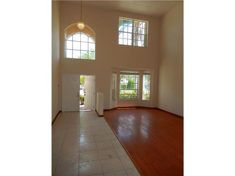 Beautiful 2 story home on the water in prestigious Pembroke Falls with all the amenities and security. Nice curb appeal with a fenced yard overlooking the wide lake with room for a pool. Updated bathrooms with a step up roman tub in the master and separat e sinks. Real wood floors and tile throughout. Updated kitchen cabinets with stainless steel appliances and corian counters. Vaulted ceilings in living and dining rooms. This is a Fannie Mae property.