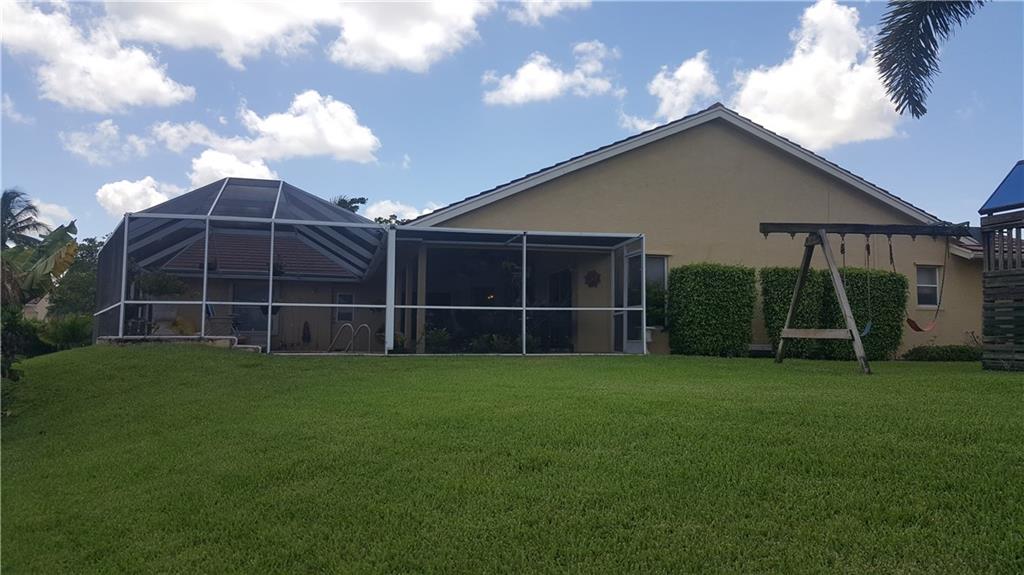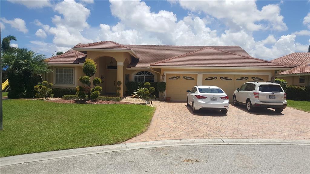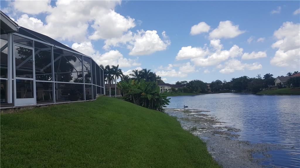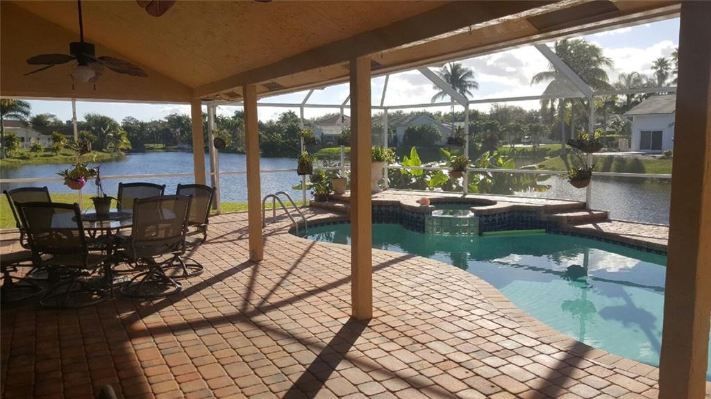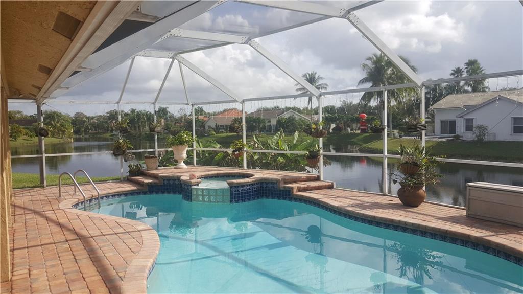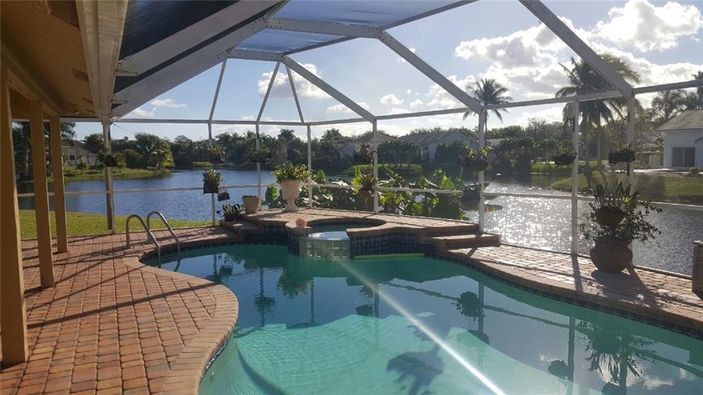 Remarkable Cul-De-Sac Lot with Upgraded Pool overlooking expansive Lake. Over 200 feet of water frontage on pie shaped lot. ONE OF A KIND! THIS IS A MUST SEE! New Thomasville Kitchen Cabinets with Granite Counters that is open to Living Room. New carved Laminate Floors throughout Bedrooms. Split bedroom Plan, 3rd car garage has been professionally converted by Builder for a fully functioning Office or 5th Bedroom. Tropical Paradise. New Hurricane impact Garage. NO ASSOCIATION OR ASSOCIATION FEES