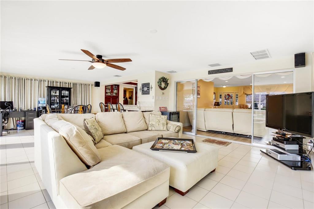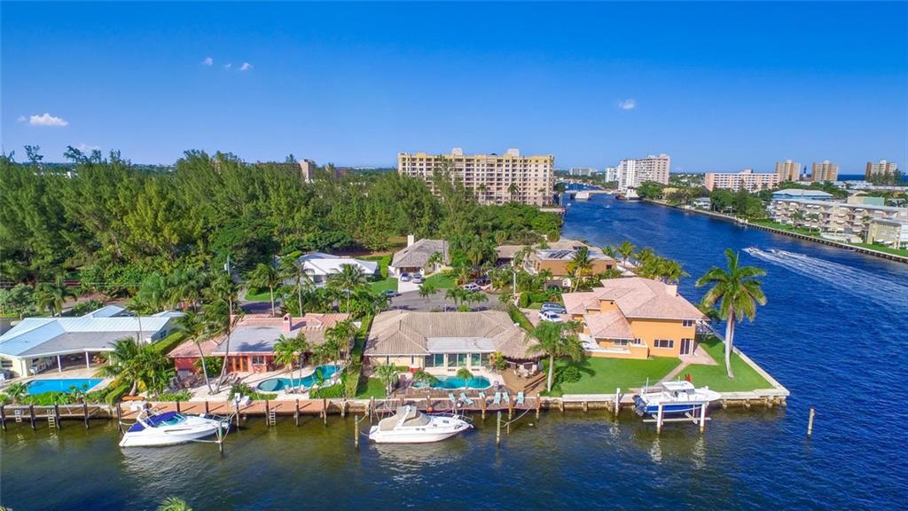 SOUTH FACING INTRACOASTAL HOME. Well maintained and updated pool home with 4 bedrooms and 3 baths. Gorgeous remodeled kitchen with wood cabinets, granite countertops, stainless steel appliances, center island and water views. Formal dining, large living room, split bedrooms and great Florida Room. Entertainer's backyard with Tiki bar, sparkling pool/spa, private dock and incredible wide views. 2-car garage and circular driveway. Cul-de-sac location, close to shopping, restaurants and the beach!