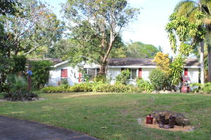 Country Home with spacious Guest House/In Law Suite/Renal Suite Located at the End of a Paved Road in the Acreage. Located less than a mile from 441 extension. New Carrier AC unit inside and out 10/2016, Water softener and Hot Water heater new 2010. New Roof 2005. Home features lush landscaping with many palm trees,in ground sprinklers, concrete drive way, Beautiful stocked pond for fishing.Pond is plumbed for a fountain. Relax and enjoy the view from the large screened in back porch. Home has also been wired for a Generator Which is included in the purchase of the home. 7700 Powermax. Accordion Storm Shutters