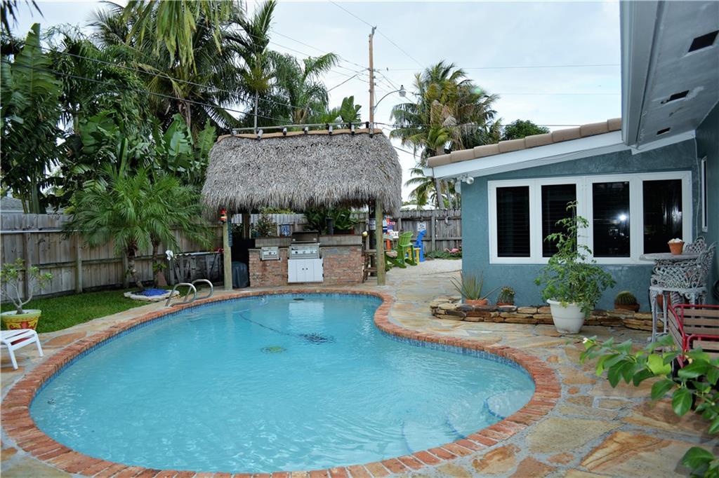 This Garden Isles tropical oasis is the perfect home for both living and entertaining. This well appointed 2 bedroom 2 bath home is immaculately maintained. This home features many upgrades including impact windows , impact doors, a salt chlorinated pool, tiki hut, fireplace, upgraded electrical panel and an outdoor cooking area to name a few. The bathrooms were recently renovated and the kitchen features newer appliances. Don't miss out on the opportunity to see this beautiful home.
