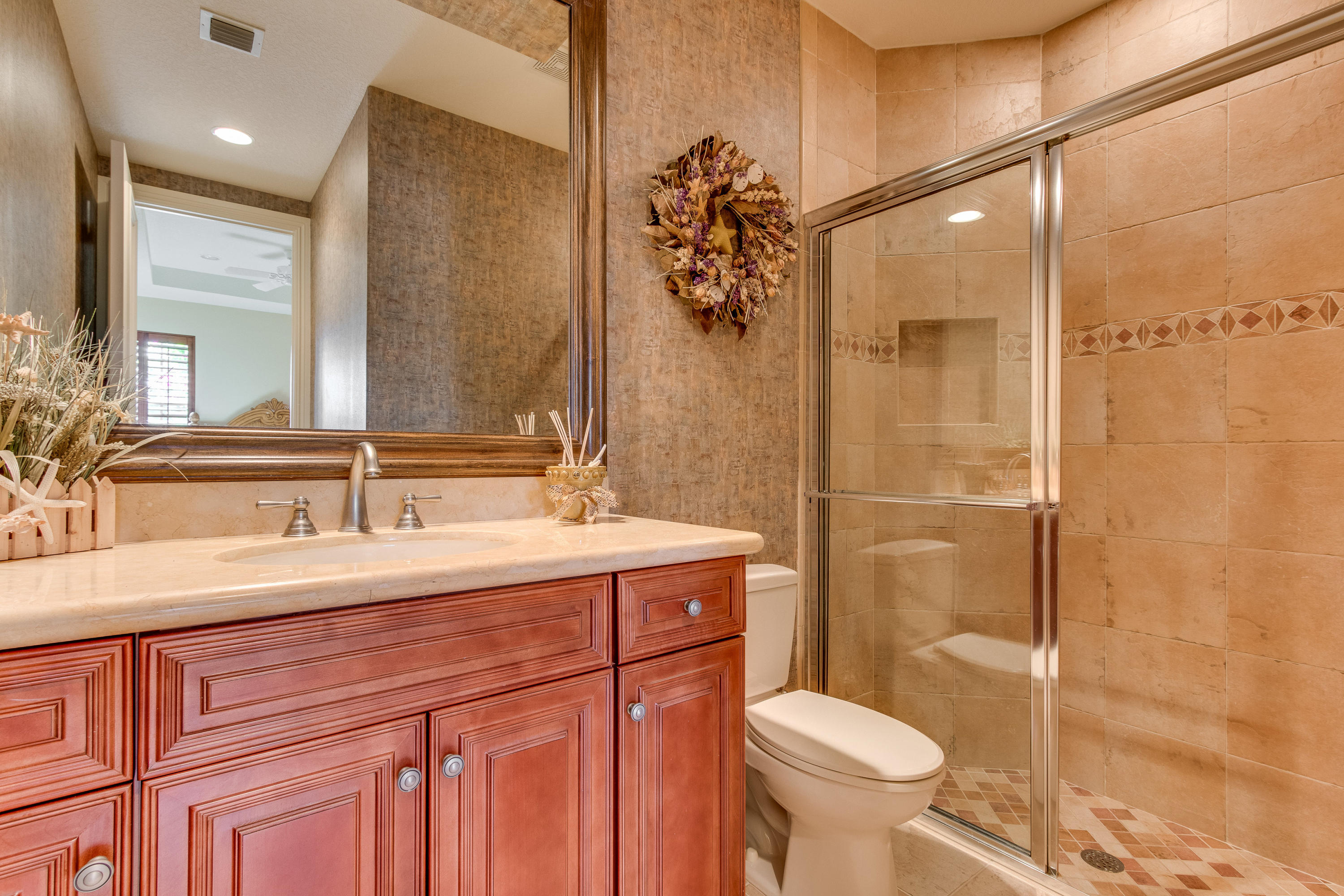 REDUCED AGAIN!!!UNBELIEVABLE VALUE FOR HAWK'S LANDING!OWNER WANTS AN OFFER NOW!!!This 4 bedroom + den home sits on a .46 acre lot w/ large circular driveway.Beautiful water & golf views of #13 island green on the Legend course.Impact glass!Open layout,neutral colors & window treatments throughout.2 NEW a/c's!Marble floors in living areas.Fantastic bar w/ wine cooler,perfect for entertaining! Kitchen has rich chocolate cabinetry, granite countertops,sub-zero fridge,Dacor stove & micro.Huge family room w/ fireplace & new sliding glass doors that open to screened patio w/ summer kitchen.Adjacent patio area w/ heated pool/spa and tropical landscaping.Master bedroom w/sitting area & 2 walk in closets w/built-ins.3 guest bedrooms,large laundry room & full 3 car garage w/ new epoxy floor.
