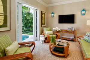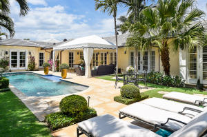 Professionally designed and renovated four bedroom home. Featured in Design Magazine. Outstanding outdoor loggia overlooking a 40 foot lap pool surrounded by gracious gardens. Impact windows and french doors. Two car garage. One level Bermuda on the sunny south side of lovely Via Linda.