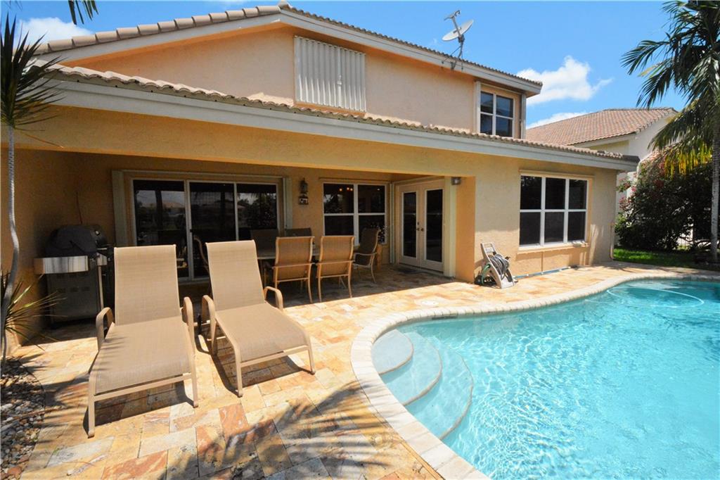 ENJOY THE RESORT FEEL OF THIS BEAUTIFUL BACKYARD WITH LOVELY LANDSCAPING SURROUNDING THE TRAVERTINE POOL DECK, ALL OVERLOOKING THE PEACEFUL LAKE. LOWER LEVEL FEATURES A FULL BATH AND BEDROOM. ALL WOOD ON STAIRS, LOWER LEVEL AND UPPER LEVEL. BEAUTIFUL FRENCH DOORS OPEN TO THE COVERED PATIO. HOME IS PROTECTED BY SECURITY SYSTEM AND ACCORDION SHUTTERS. ADJUSTED SQUARE FOOTAGE AS PER BCPA