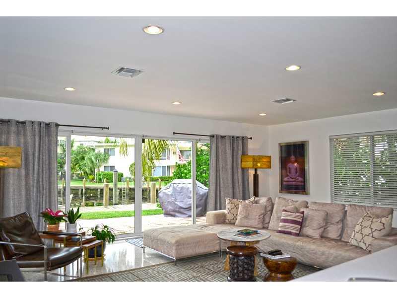 WOW, Completely remodeled waterfront home in sought after Dolphin Isles- Polished Terrazzo floors- impact windows/doors- new high end kitchen new a/c, new electric, new spa like baths. New dock, seawall cap and batter pilings 2012- beautiful view of the I ntracoastal from the large dock-40 ft of water plus a piling set out to accommodate a larger vessel. Your own private Tropical retreat. Walk to the beach, dining & shopping. This large corner lot could also be used for townhomes, a larger home, small bldg