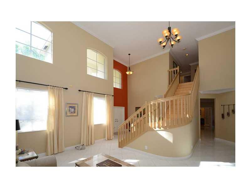 Expansive Golf Course Views! Beautiful 2 story home, move-in ready! Soaring ceilings, large living areas. Neutral color scheme. Kitchen has high-end stainless appliances 42" wood cabinets, granite counters. French doors open to screened pool & patio. Real wood floors upstairs. Master suite has 2 walk-in closets, marble Master Bath, updated vanities & granite counters. Accordion Shutters. Short walk to playground & bus stop. Weston "A" rated schools. Come enjoy all that Weston Hills offers!