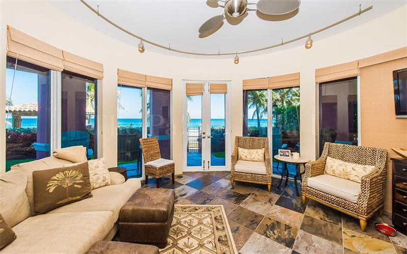 Magnificent Villa directly on the sand. 4 bedrooms, 4.5 Baths with oceanfront terraces overlooking 450 ft. of pristine beach & large private oceanfront garden at The Palms, Fort Lauderdale's most luxurious enclave affording its residents unequaled privacy, gated security and service.