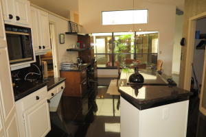 Tropical entrance into this 3 bedroom, and family room, 21/2 bath single family home. This home is located on a prime lot with expansive lake and golf view. Custom Tiffany glass front door. No step down in to the main living area. Beautiful entertainment center makes this family room special. Large master bedroom with built in bedroom set and huge closet. 2 large guest bedrooms. Kitchen beautifully redone. Second bathroom all redone. Cabana bath. Roof 2009. Newer washer and dryer, 7 years. New water heater. Decorator fans and fixtures. Garage floor epoxy. Extra refrigerator in garage. Walk to club. This is a winner.