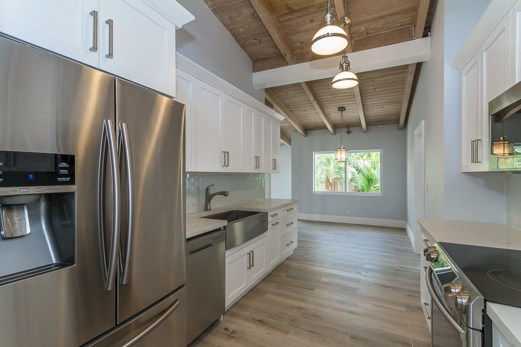 New Custom design home featuring only quartz countertops in the kitchen and baths with only Delta premium faucets used. When walking up to the double 9 foot entry doors you will notice the outside of the home is featured in 3 massive walls of all natural Italian stone marble with a travertine stone entry. The wood Porcelain floors allows you to enjoy the look of wood with the durability of porcelain. Marble master bath. New electrical, plumbing, AC, Water heater, pool & the latest Samsung kitchen.